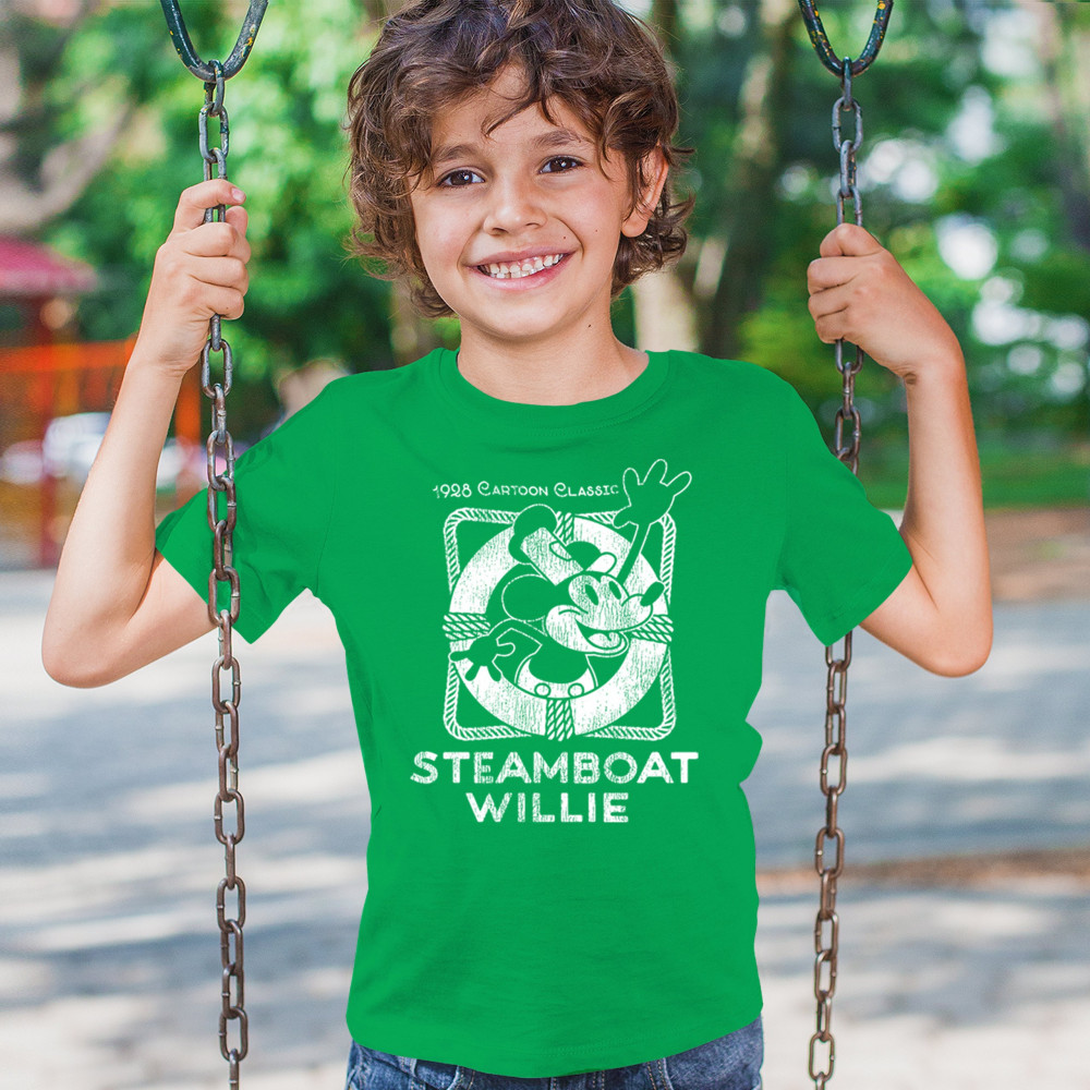 Channel the iconic charm of Steamboat Willie with our 'Steamboat Willie Vintage Life Preserver' tee. Perfect for beach days and family vacations, this design captures the magic of the 1928 classic. Whether you're lounging by the shore or patrolling as a l