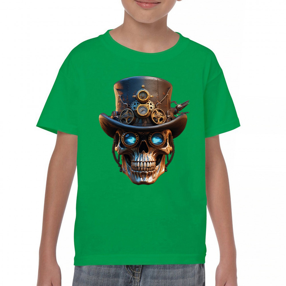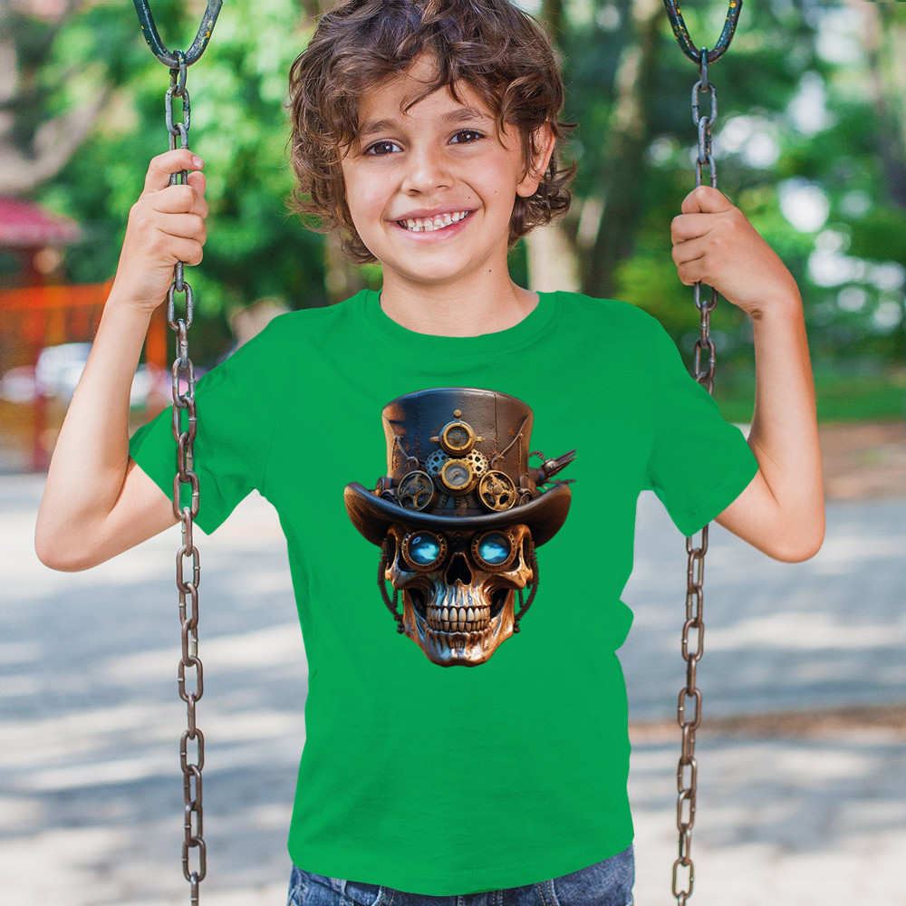 Steampunk skull shirt with gothic retro-futurism. Perfect for Halloween, cosplay, biker rallies, and edgy rebel fashion lovers.