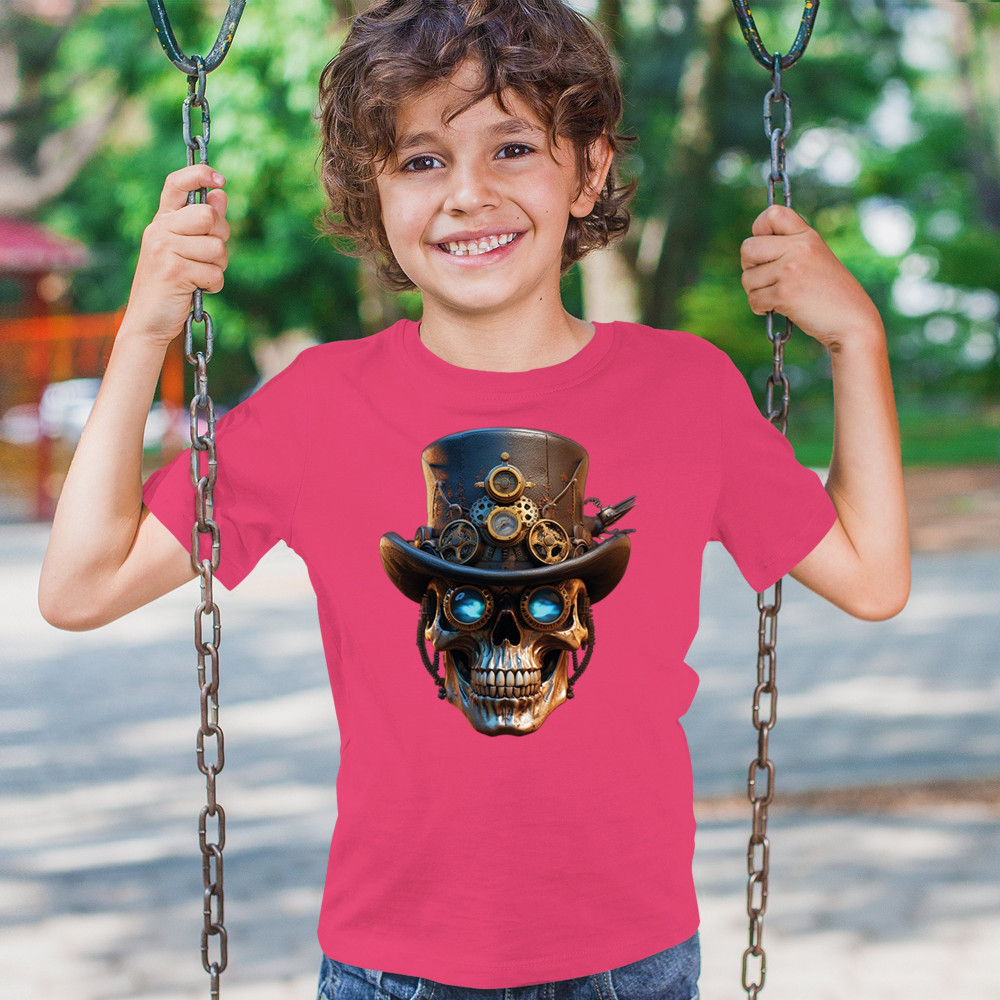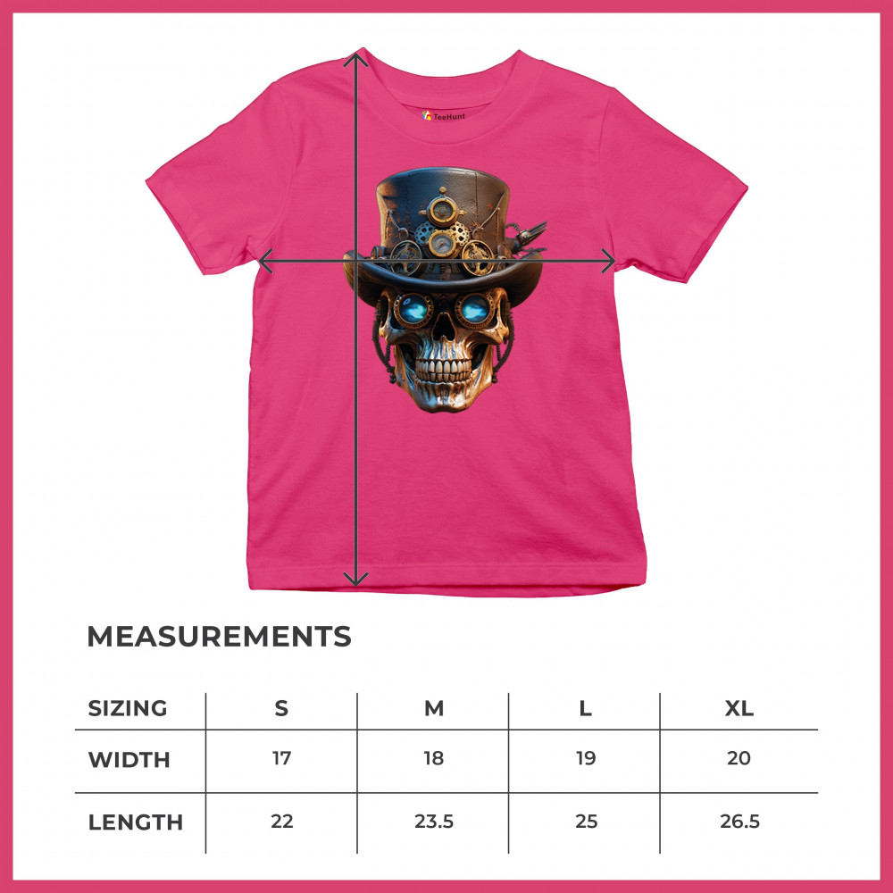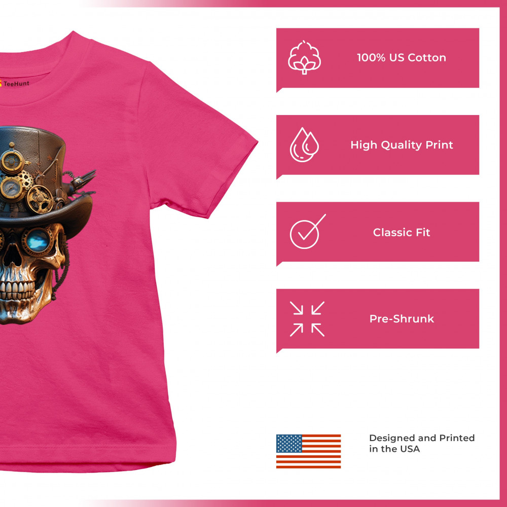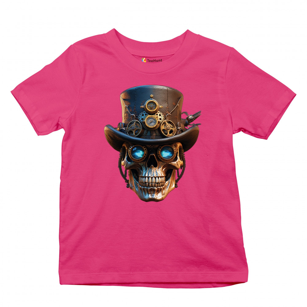 Steampunk skull shirt with gothic retro-futurism. Perfect for Halloween, cosplay, biker rallies, and edgy rebel fashion lovers.
