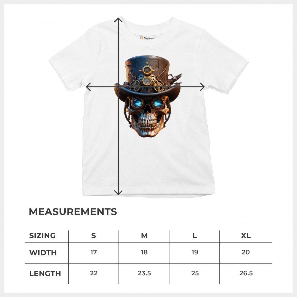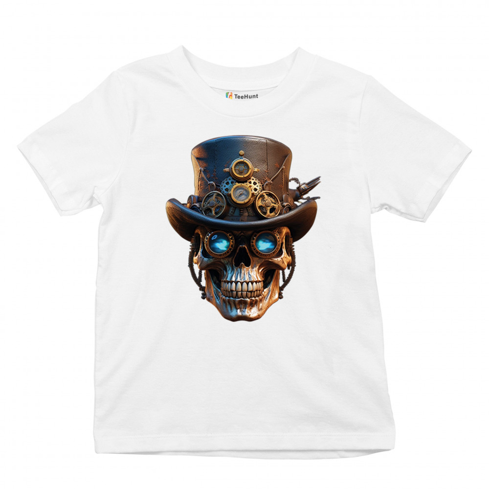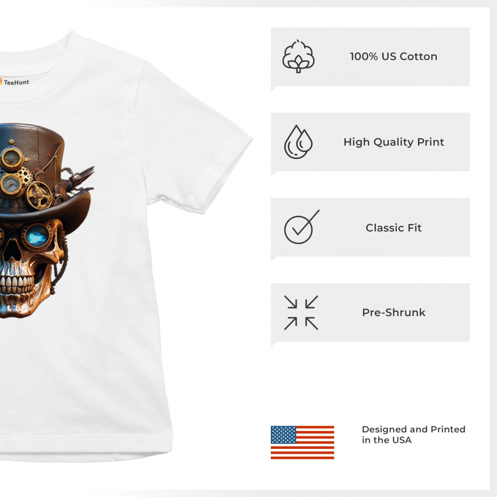 Steampunk skull shirt with gothic retro-futurism. Perfect for Halloween, cosplay, biker rallies, and edgy rebel fashion lovers.