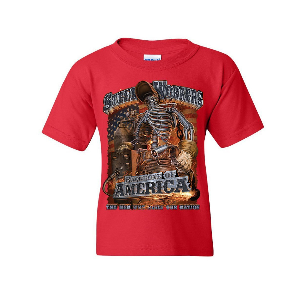 STEELWORKERS - BACKBONE OF AMERICA steel workers backbone of america youth t-shirt welding iron metal kids tee red