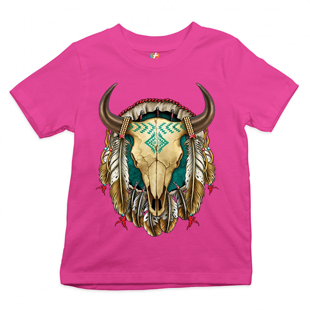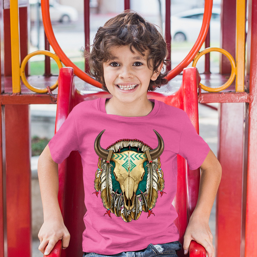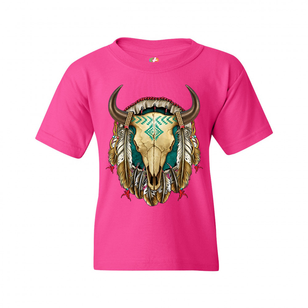 STEER SKULL DREAMCATCHER youth t-shirt native american indigenous culture kids pink