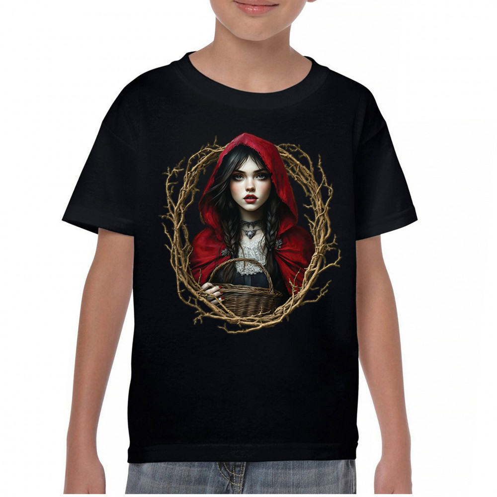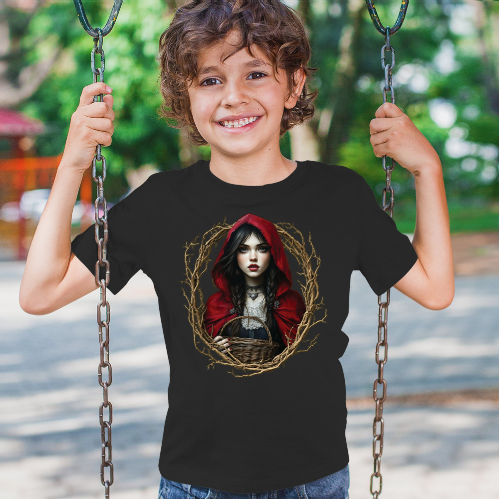 STORYBOOK RED RIDING HOOD youth t-shirt gothic fairytale cute little girl kids black