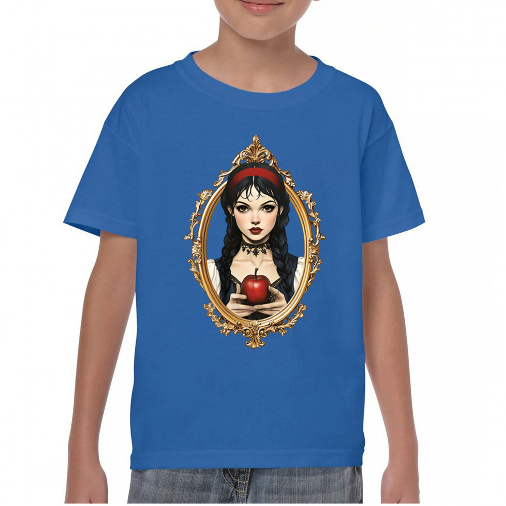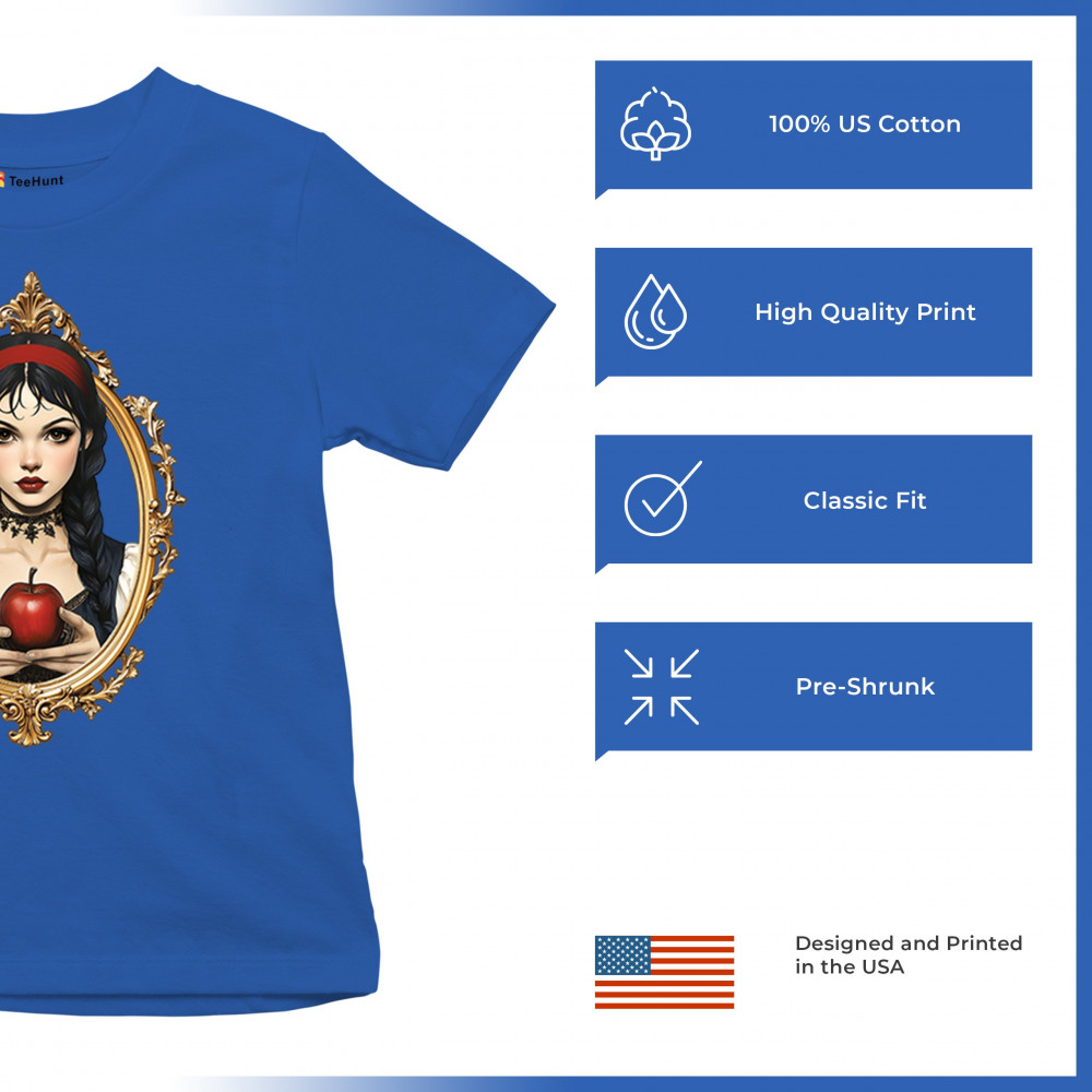 This enchanting design brings to life a gothic-inspired girl holding a red apple, encased in a regal vintage mirror frame. With elements pulled from Snow White, fairytales, and fantasy symbolism, it blends innocence and temptation with dark romanticism. Perfect for dreamers, collectors, and lovers of magical narratives and visual elegance.