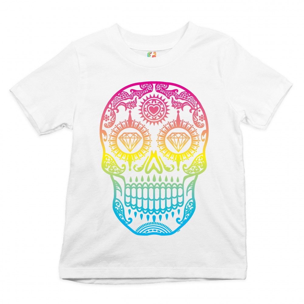 SUGAR SKULL CALAVERA DIAMOND EYES youth t-shirt day of the dead kids white