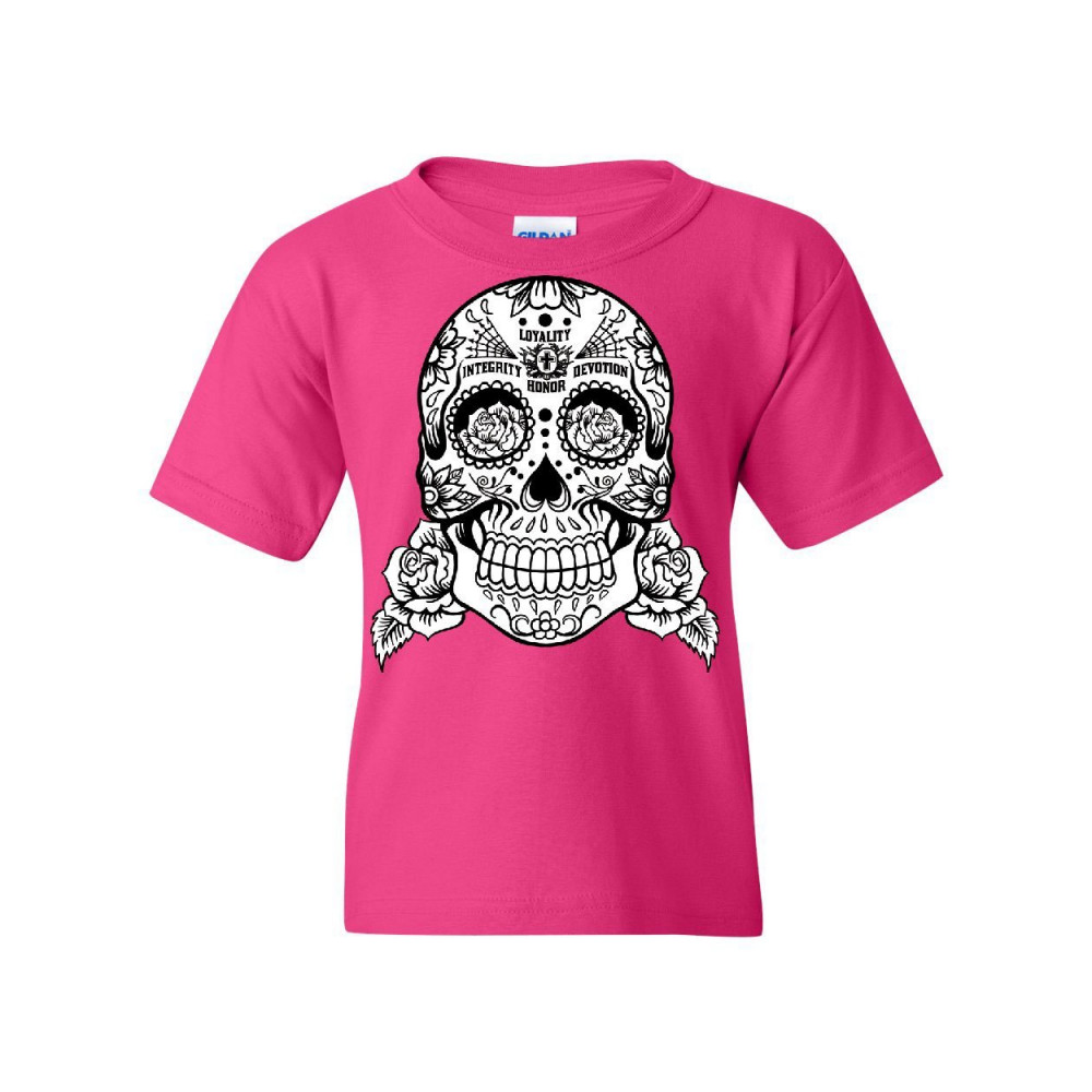 SUGAR SKULL youth t-shirt loyalty integrity devotion honor pink