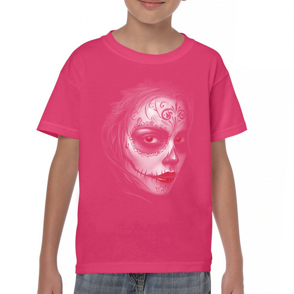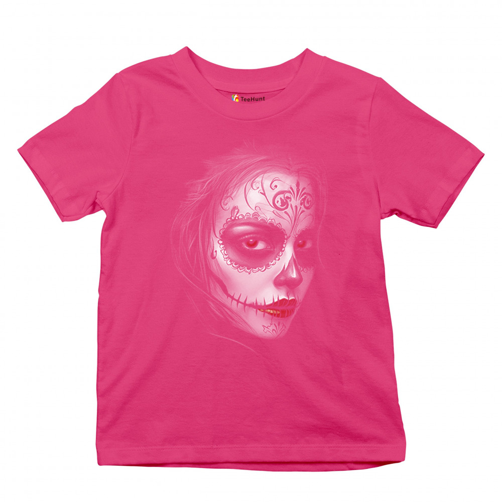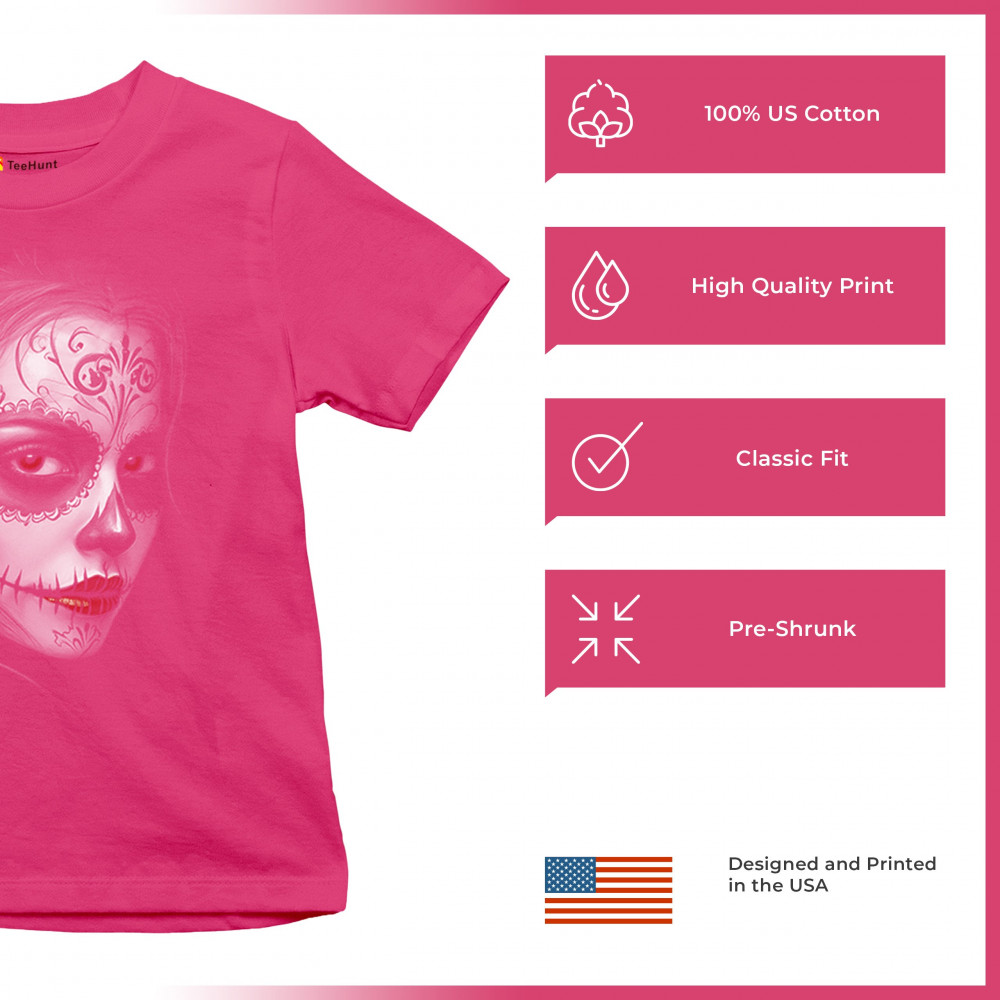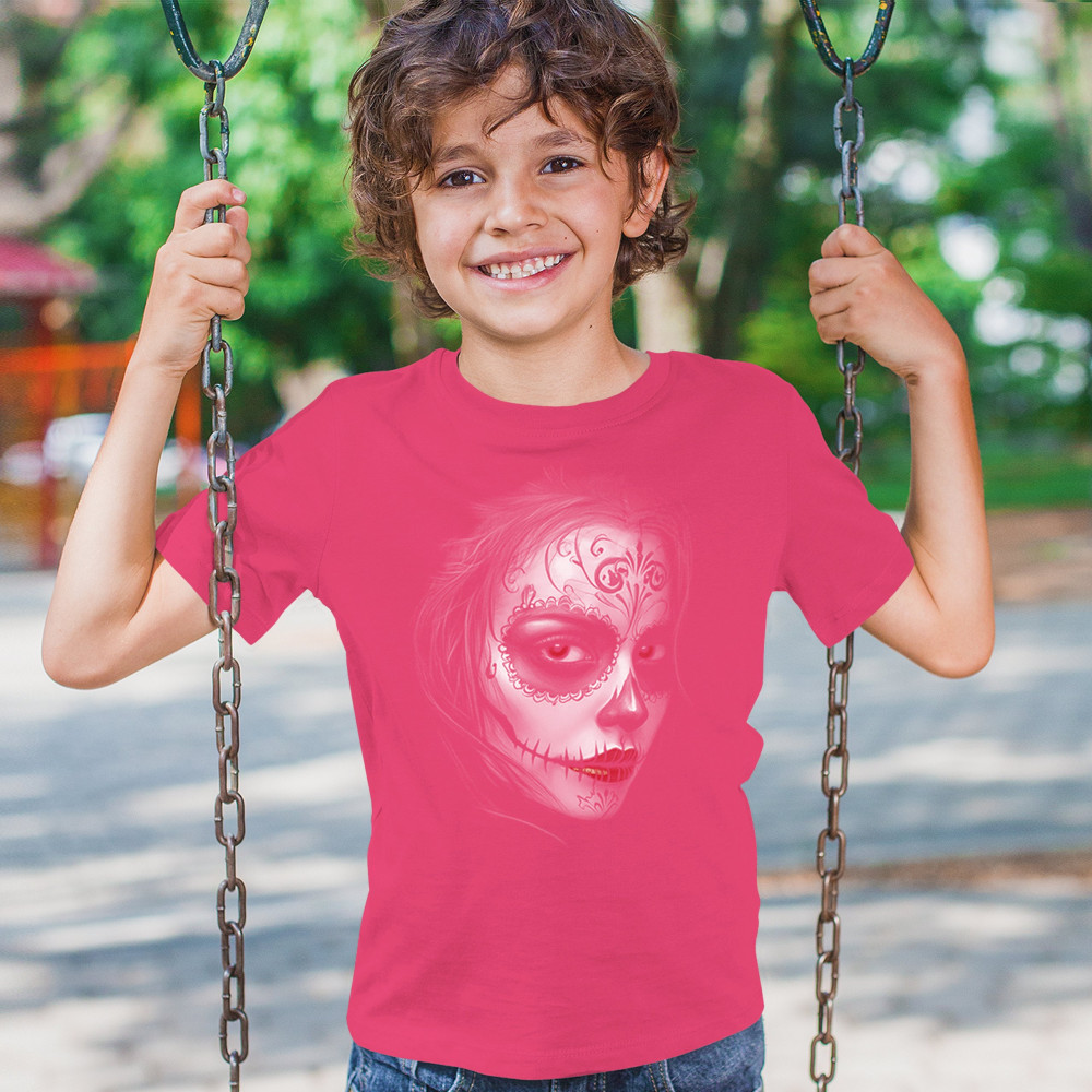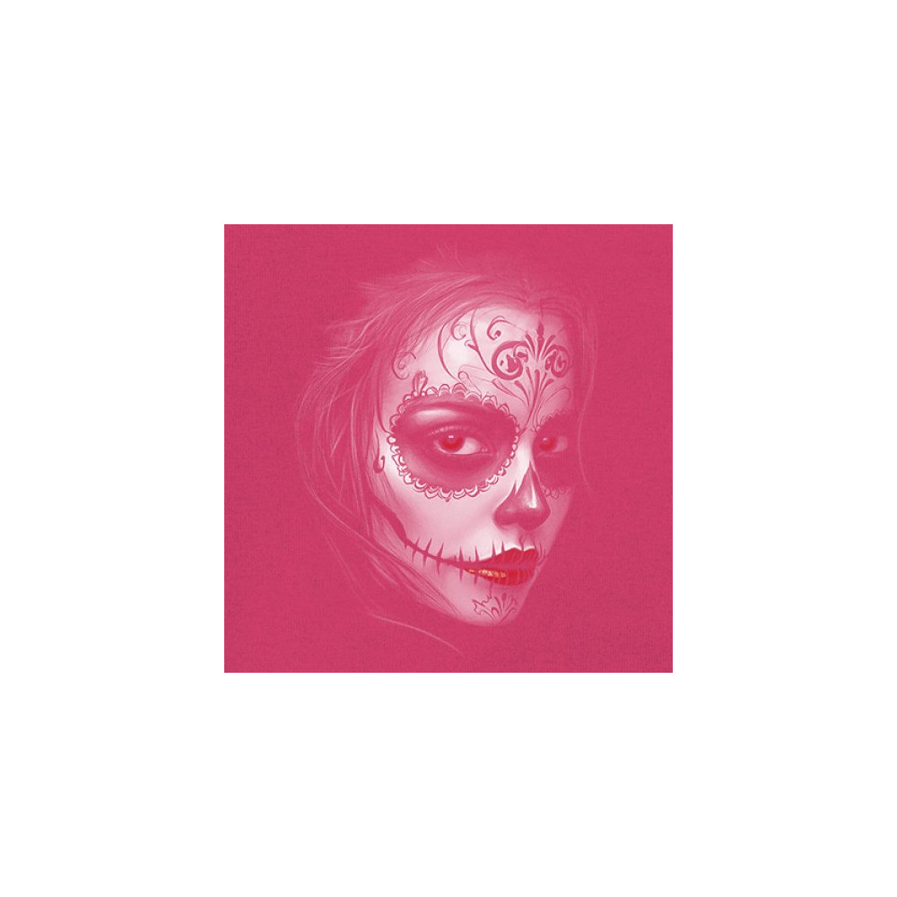 Glowing red eyes and red lips bring this sugar skull design to life. Featuring floral skull makeup, dark shadows, and gothic energy, it's a perfect pick for Halloween, DÃa de los Muertos, or alt culture fashion. Ideal for fans of bold beauty, spooky glamour, and skull art with an edge.