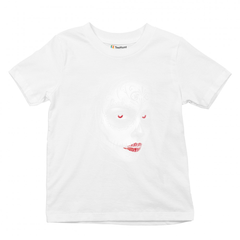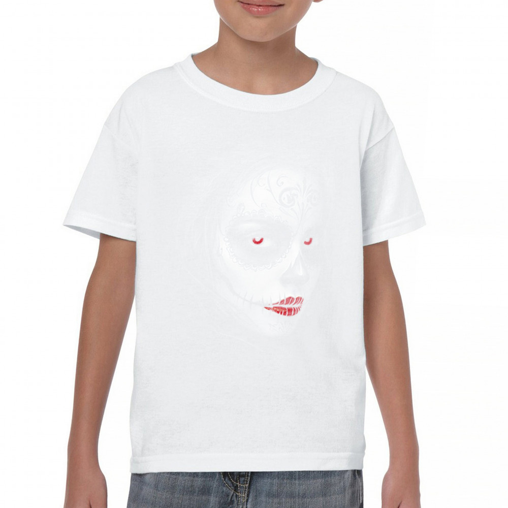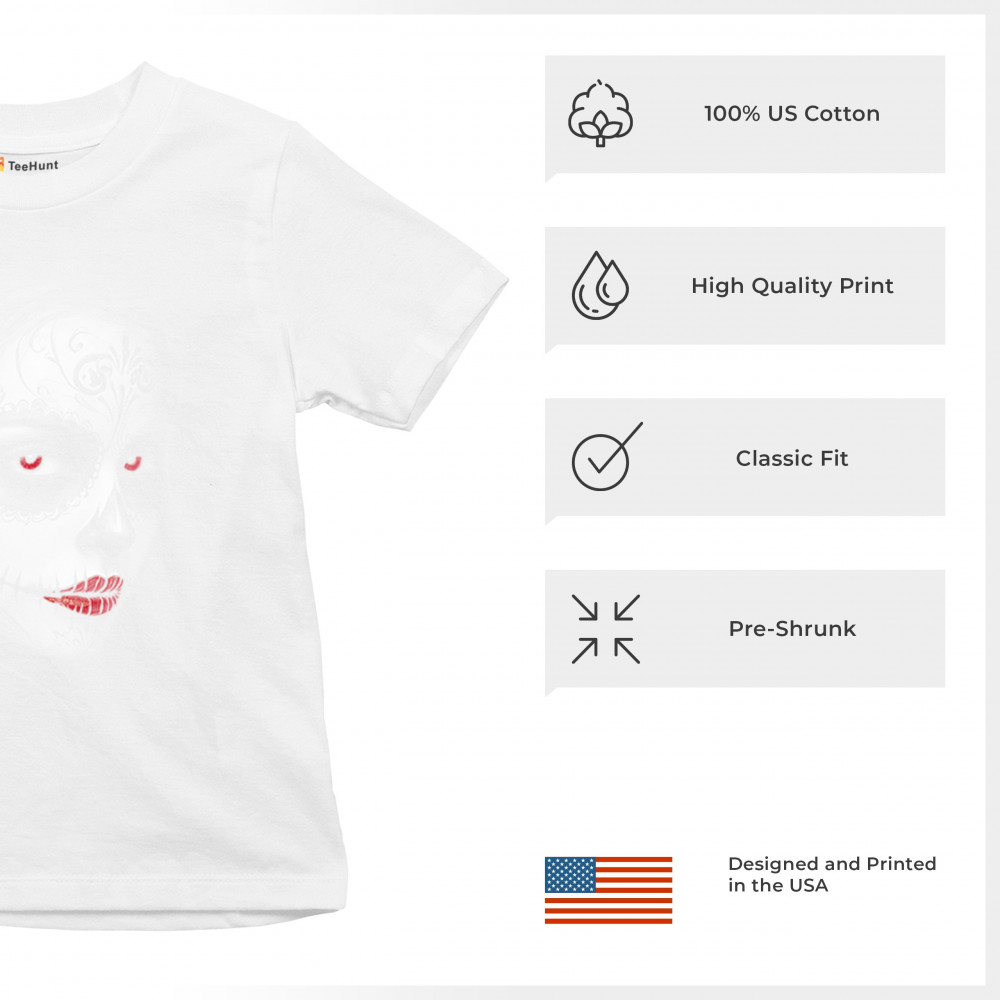 Glowing red eyes and red lips bring this sugar skull design to life. Featuring floral skull makeup, dark shadows, and gothic energy, it's a perfect pick for Halloween, DÃa de los Muertos, or alt culture fashion. Ideal for fans of bold beauty, spooky glamour, and skull art with an edge.