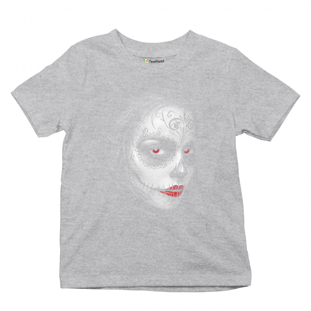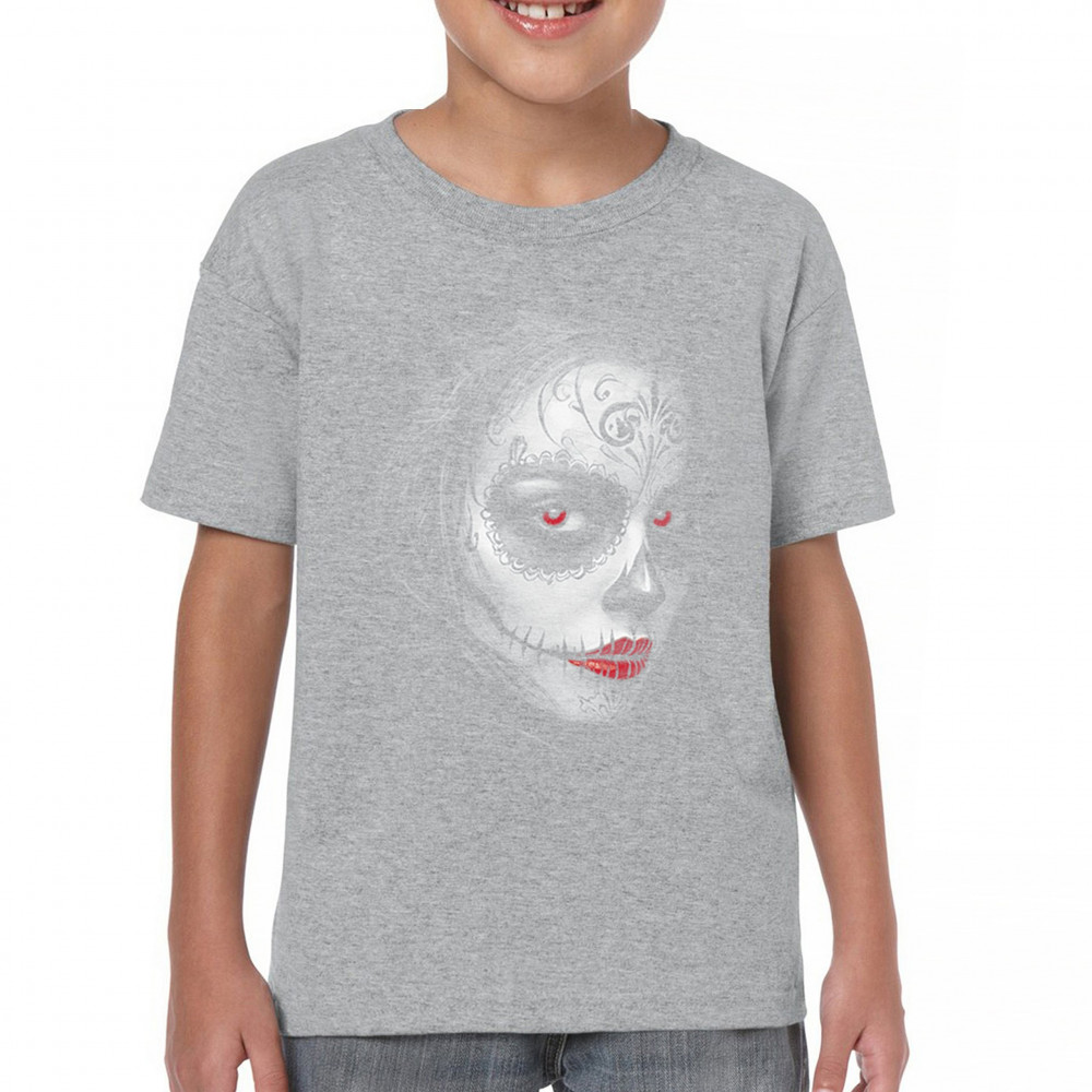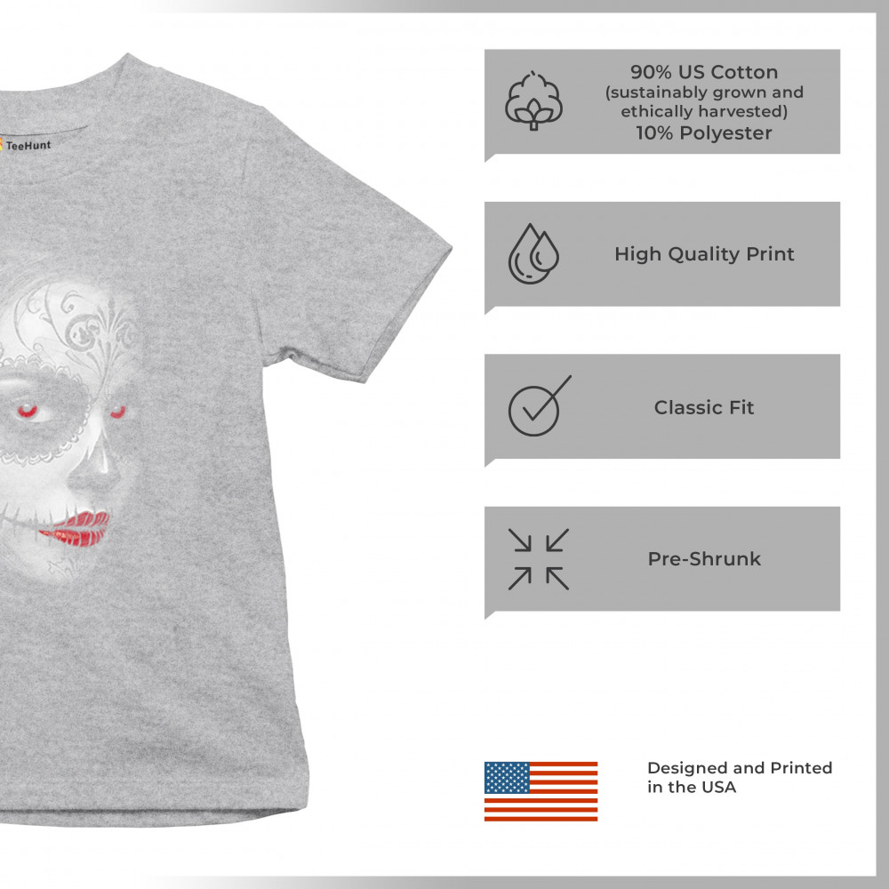 Glowing red eyes and red lips bring this sugar skull design to life. Featuring floral skull makeup, dark shadows, and gothic energy, it's a perfect pick for Halloween, DÃa de los Muertos, or alt culture fashion. Ideal for fans of bold beauty, spooky glamour, and skull art with an edge.