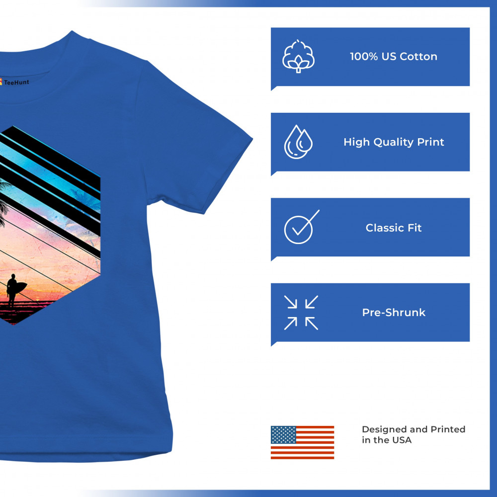 Catch the vibe of endless summer with our surf-inspired tee. Featuring silhouetted palms, warm gradients, and cool geometric shapes, it’s a visual journey from the urban grind to tropical tranquility. This tee is for the soul surfers and dreamers, made to be as enduring as the memories of your last wave. It's more than apparel—it’s a horizon of possibilities. Add this staple to your collection and let the good times roll.