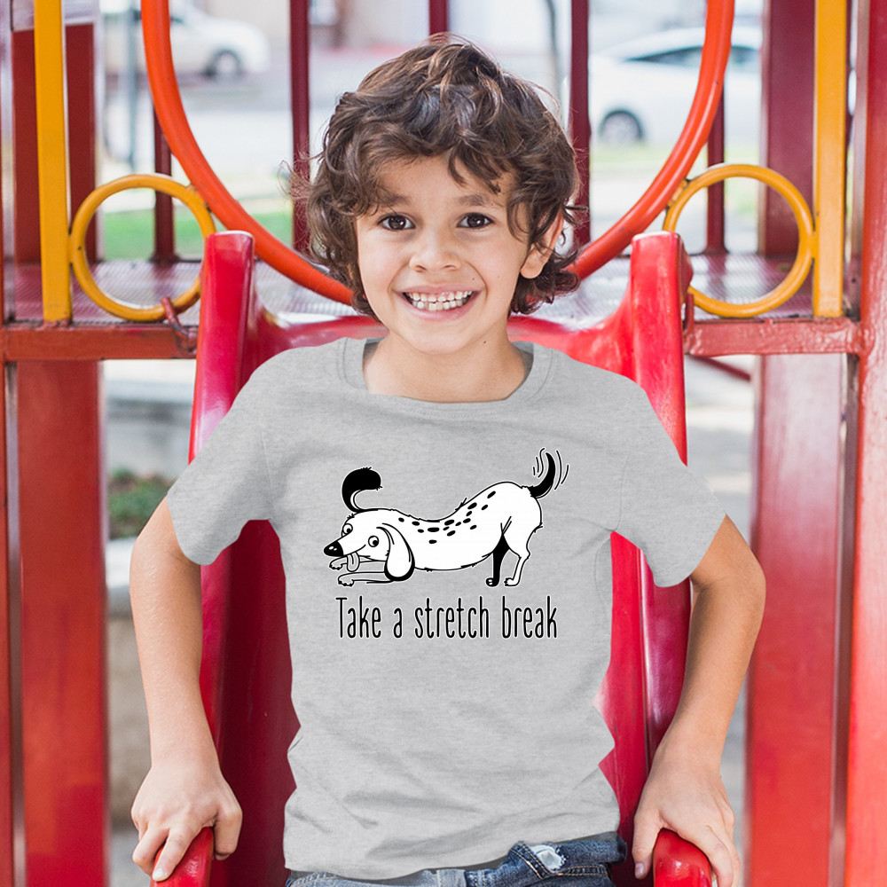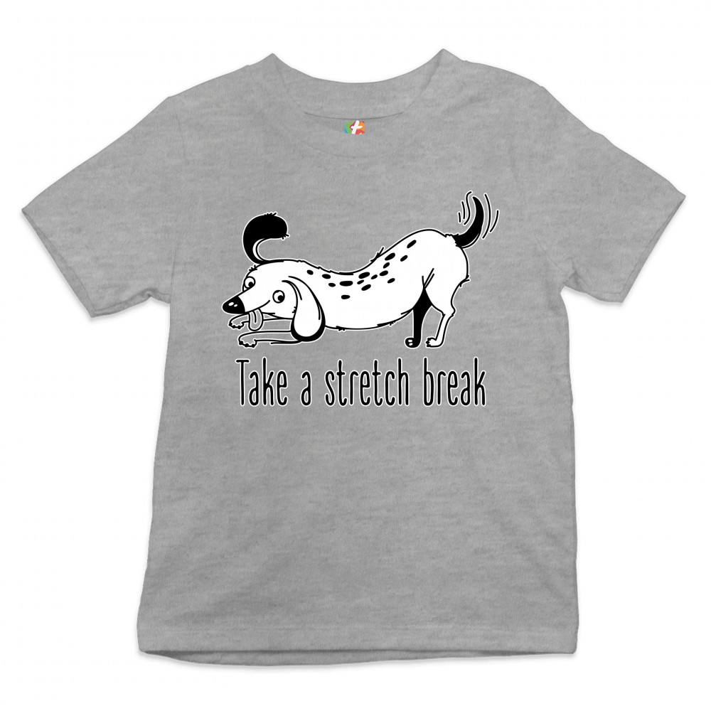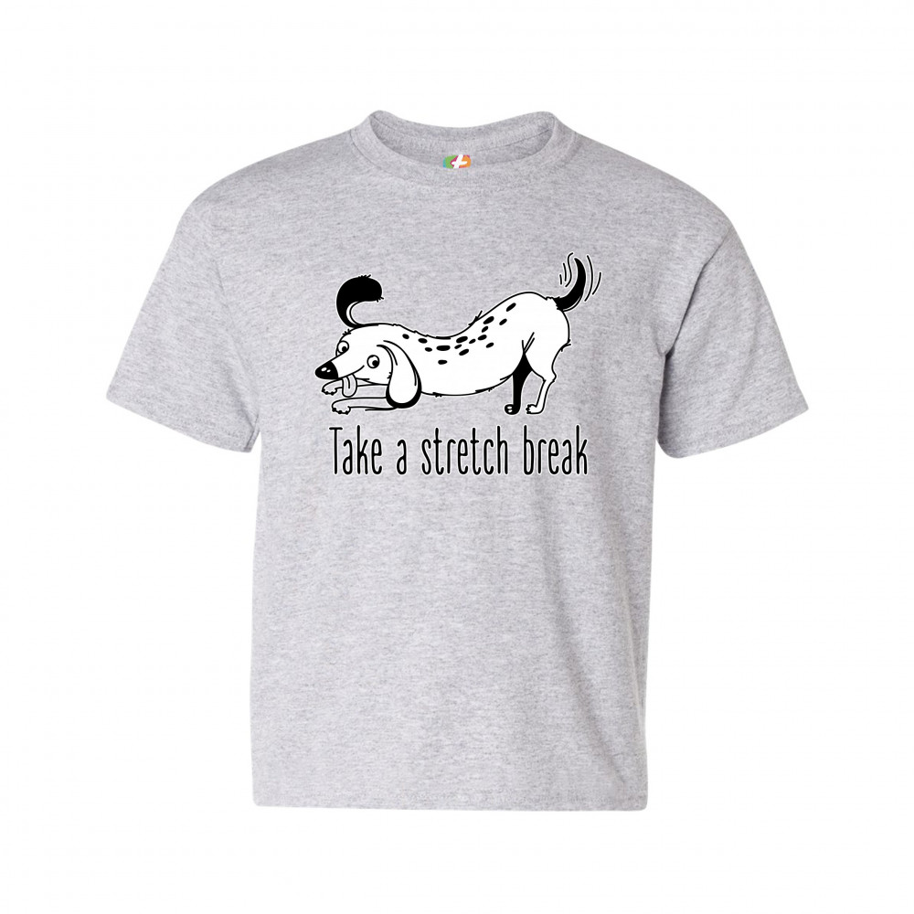 TAKE A STRETCH BREAK youth t-shirt funny dachshund dog lover pet owner kids gray