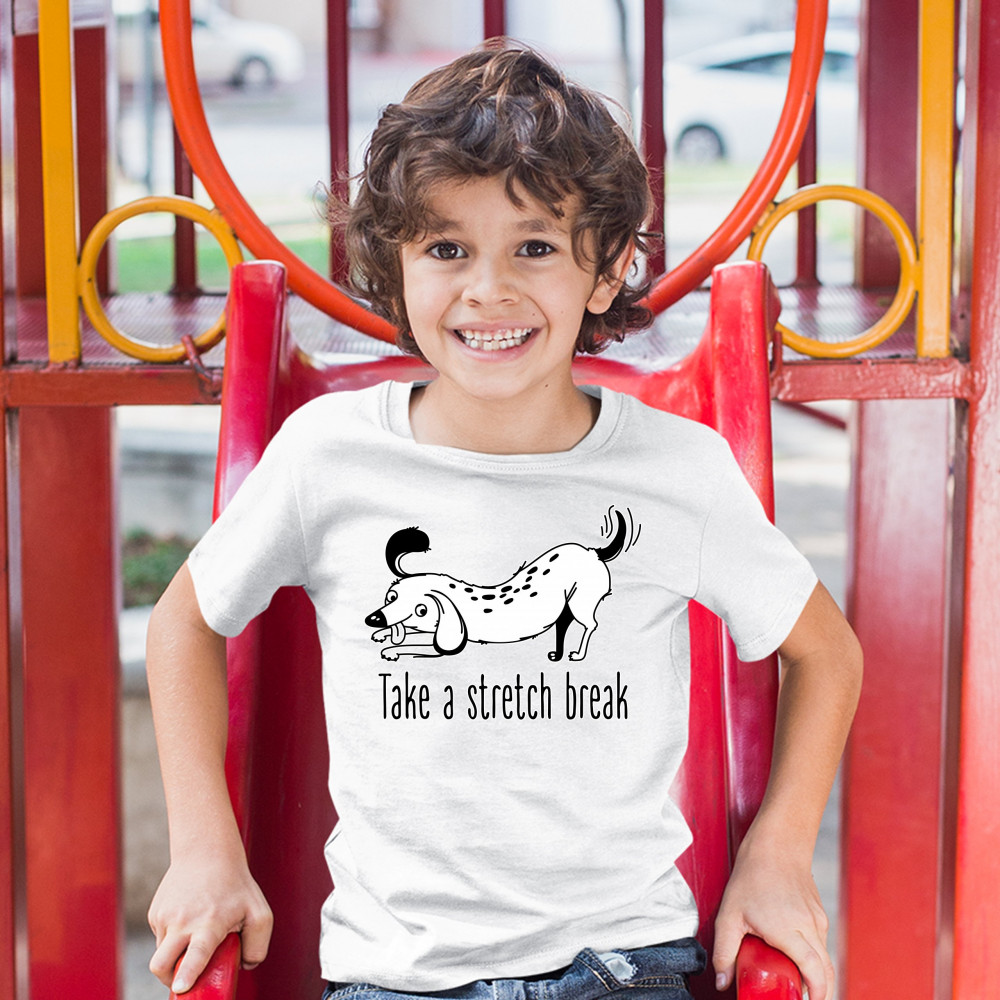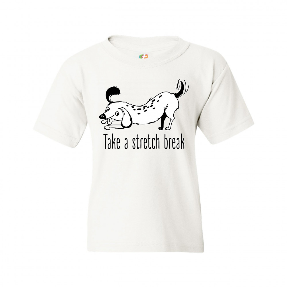 TAKE A STRETCH BREAK youth t-shirt funny dachshund dog lover pet owner kids white