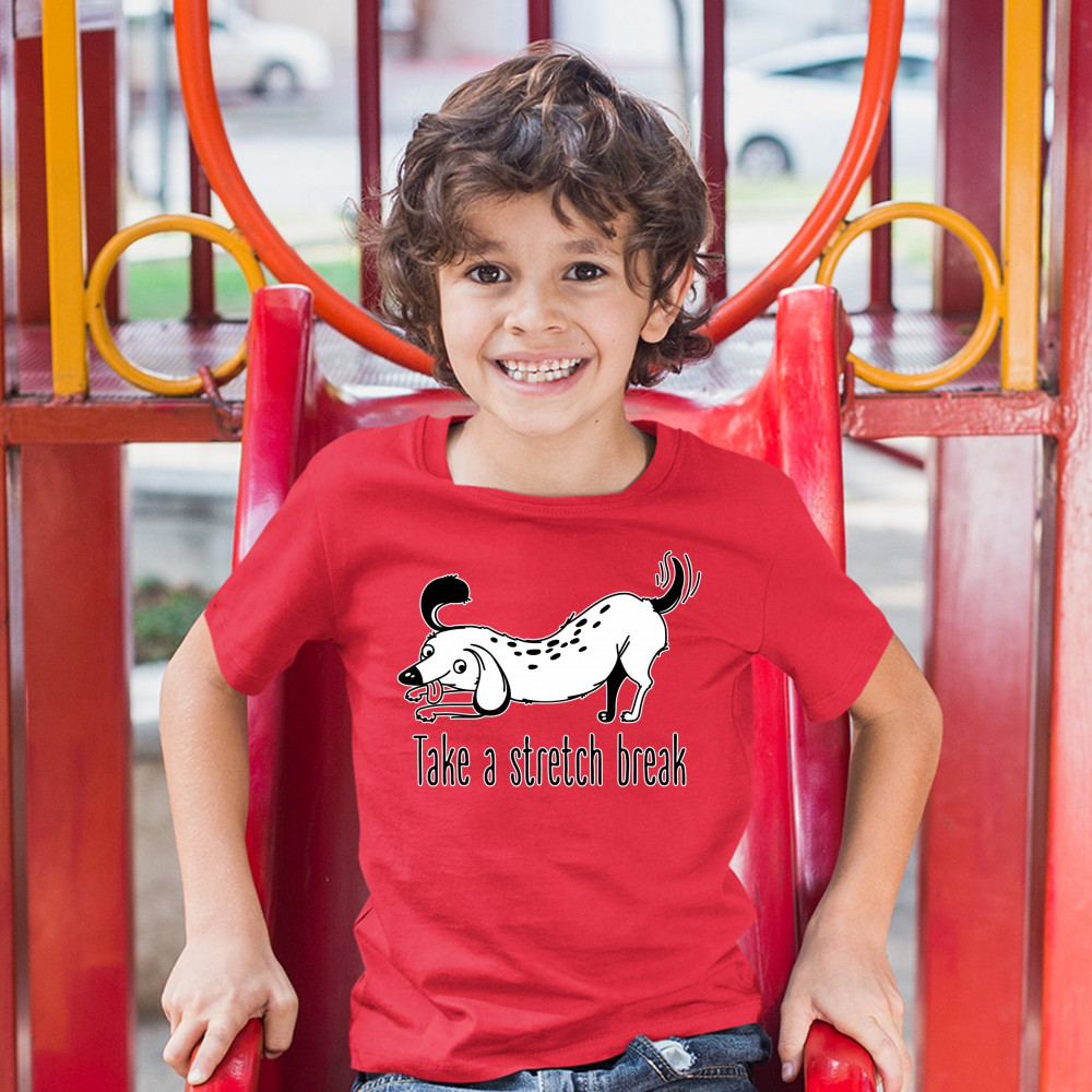 TAKE A STRETCH BREAK youth t-shirt funny dachshund dog lover pet owner kids red