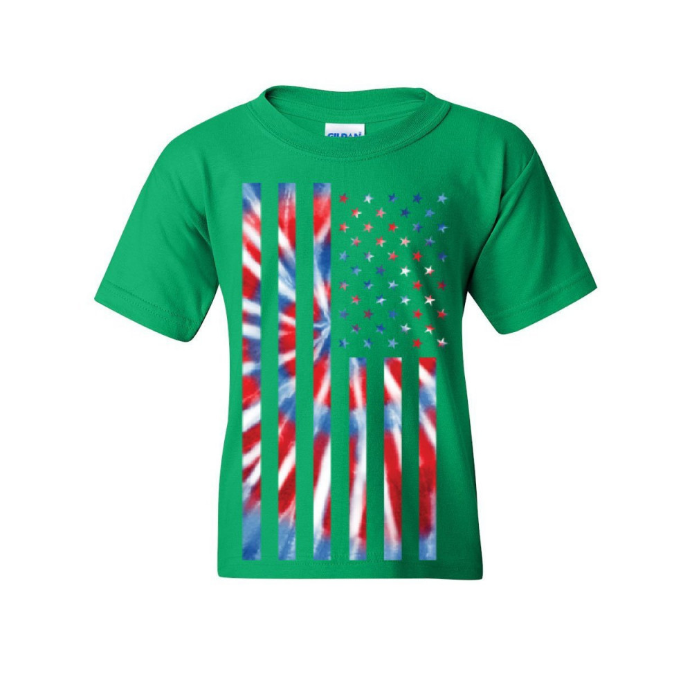 TIE-DYE AMERICAN FLAG youth t-shirt 4th of july stars and stripes kids tee green