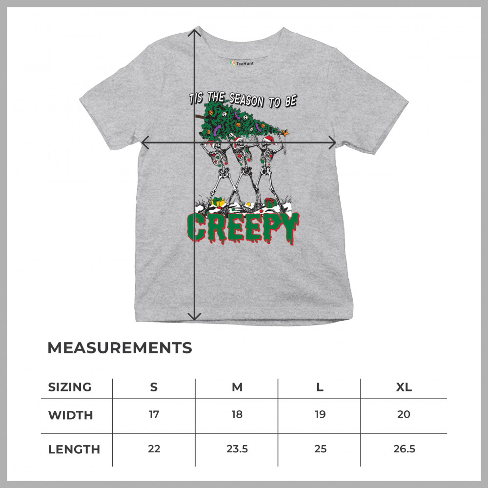 "Tis the Season to Be Creepy" combines holiday cheer with a hauntingly fun twist. This creative design features skeletons donning Santa hats as they carry a spooky Christmas tree decorated with eerie ornaments. Perfect for holiday gatherings, Secret Santa gifts, or themed parties, this design celebrates the festive and the macabre. Embrace the jolliest and creepiest bunch this season with this standout apparel.