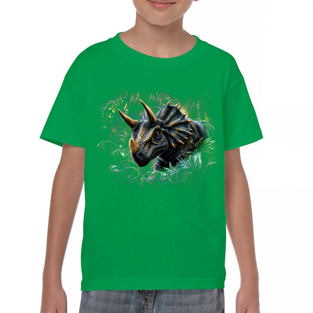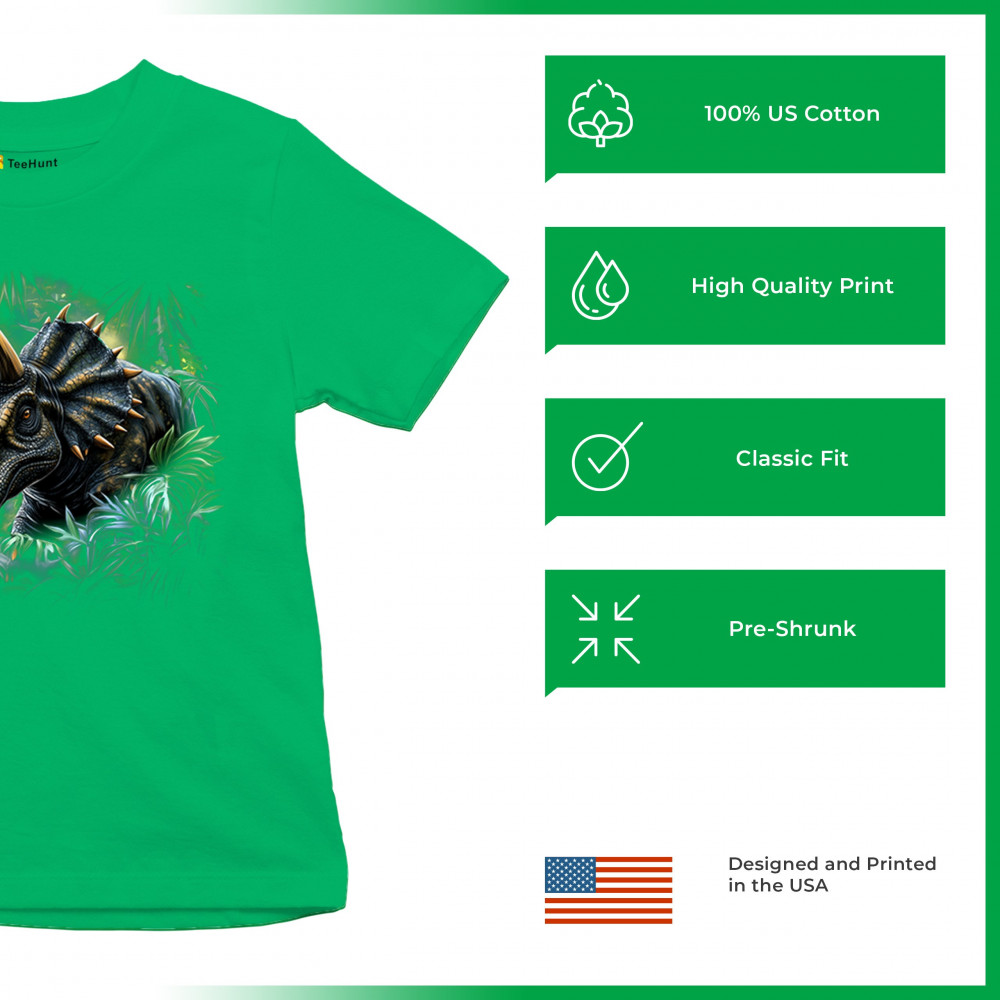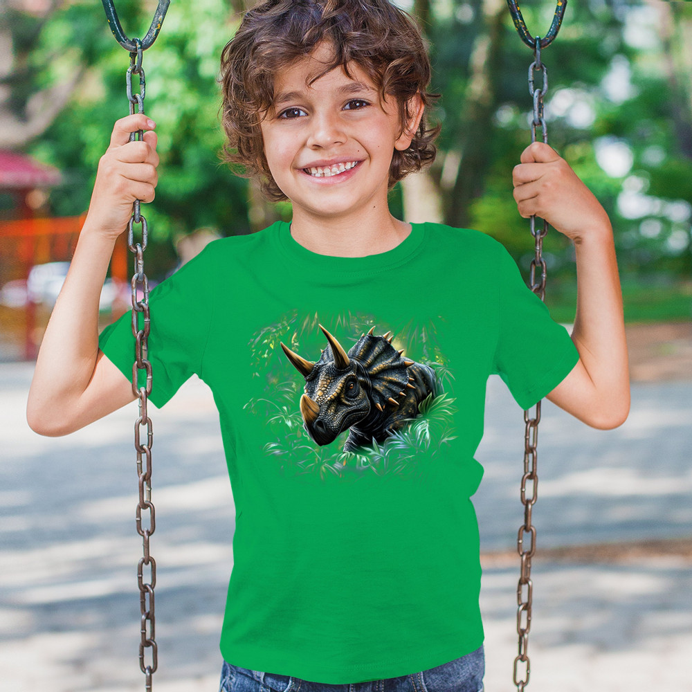 Charge into the past with this vivid triceratops design. Featuring a hyper-detailed horned dinosaur surrounded by jungle leaves, this design is perfect for dino lovers, fossil enthusiasts, and anyone fascinated by prehistoric beasts. Great for Jurassic parties, safari parks, or museum visits, it brings ancient strength to life.