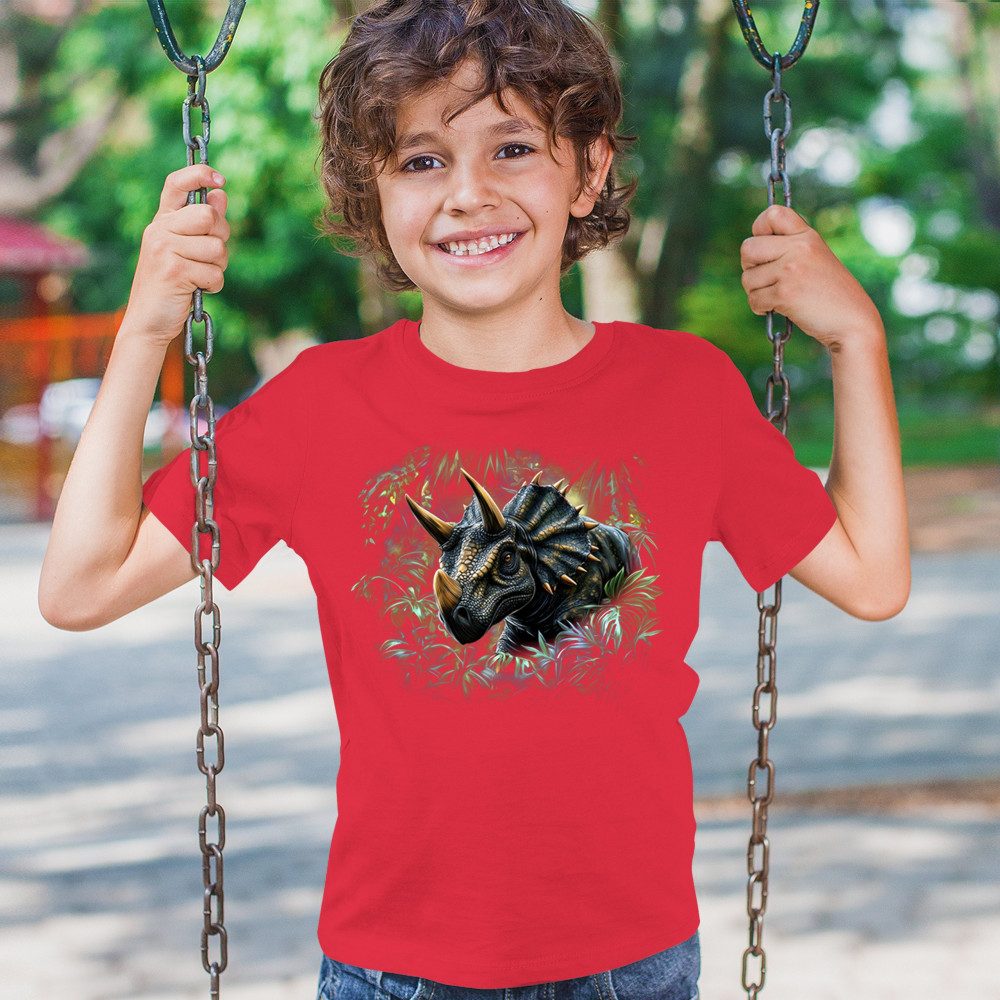 Charge into the past with this vivid triceratops design. Featuring a hyper-detailed horned dinosaur surrounded by jungle leaves, this design is perfect for dino lovers, fossil enthusiasts, and anyone fascinated by prehistoric beasts. Great for Jurassic parties, safari parks, or museum visits, it brings ancient strength to life.