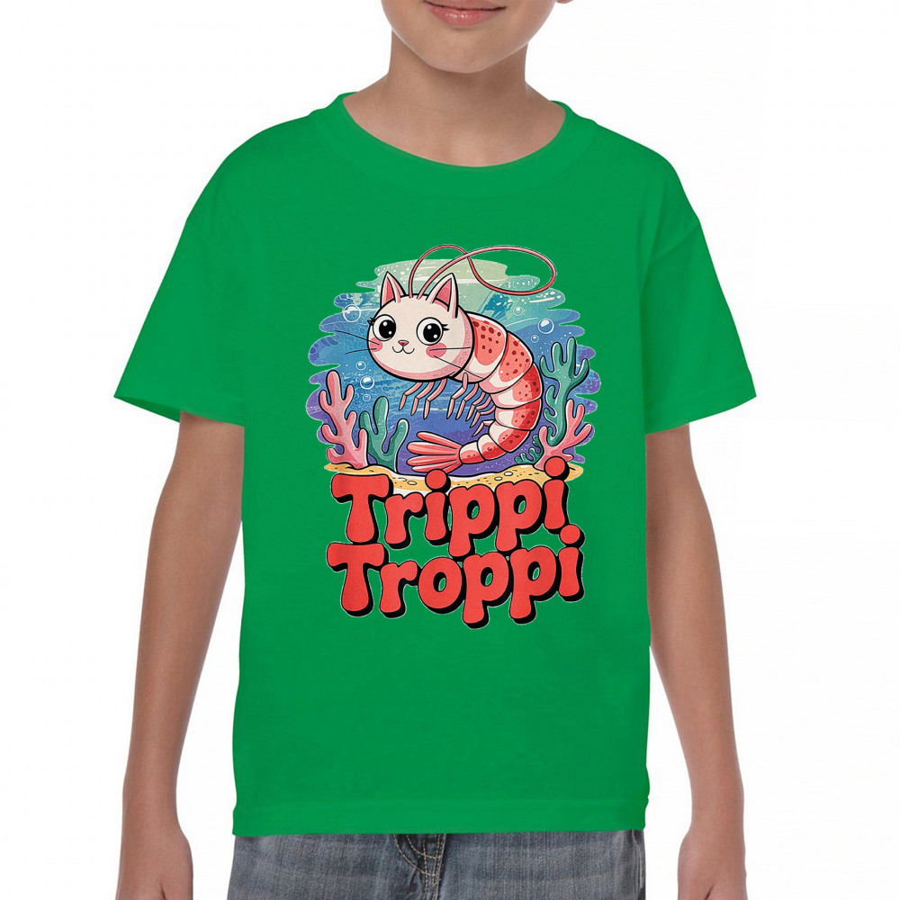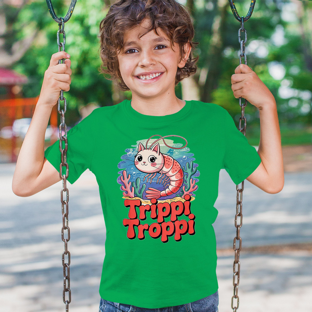 Dive deep into absurdity with Trippi Troppi—a surreal shrimp-cat fusion straight out of Italian Brainrot territory. This design captures cursed animal chaos, weirdcore visuals, TikTok meme culture, and underwater fever dream aesthetics. Made for Gen Z humor addicts, ocean meme fans, and ironic fashion lovers alike.