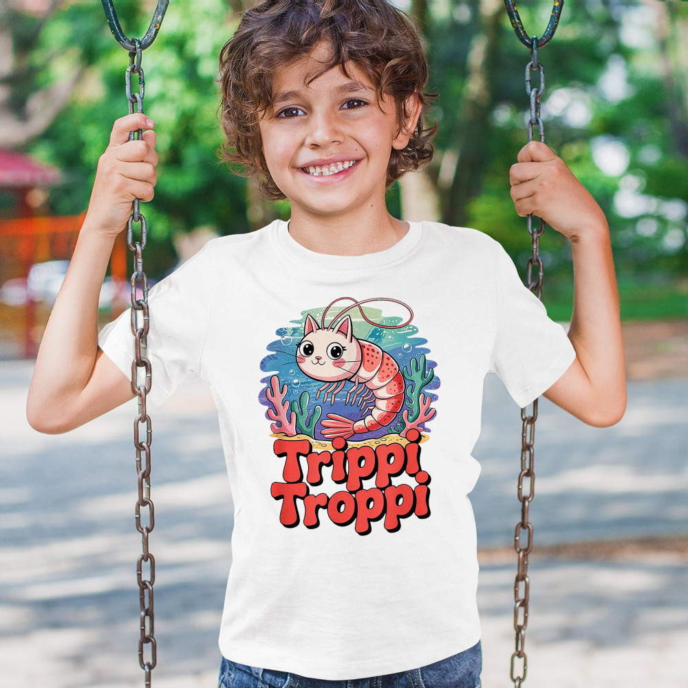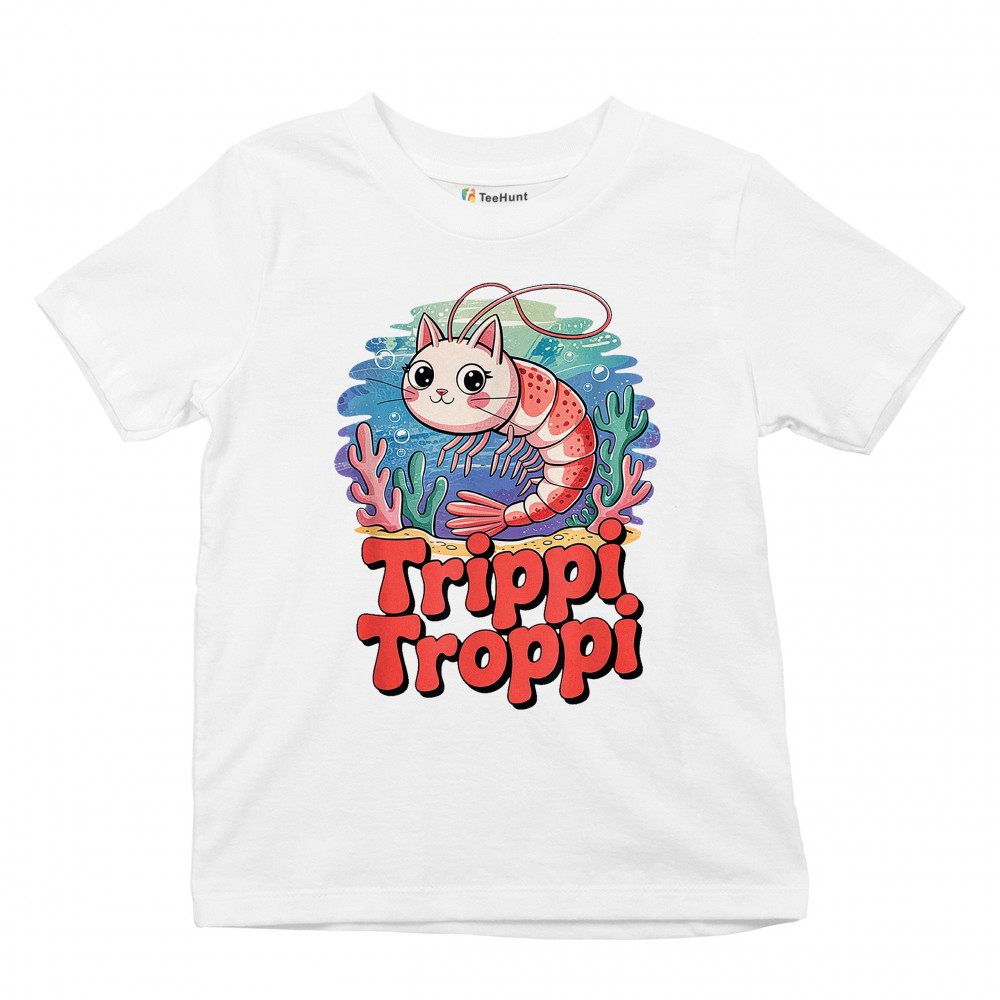 Dive deep into absurdity with Trippi Troppi—a surreal shrimp-cat fusion straight out of Italian Brainrot territory. This design captures cursed animal chaos, weirdcore visuals, TikTok meme culture, and underwater fever dream aesthetics. Made for Gen Z humor addicts, ocean meme fans, and ironic fashion lovers alike.