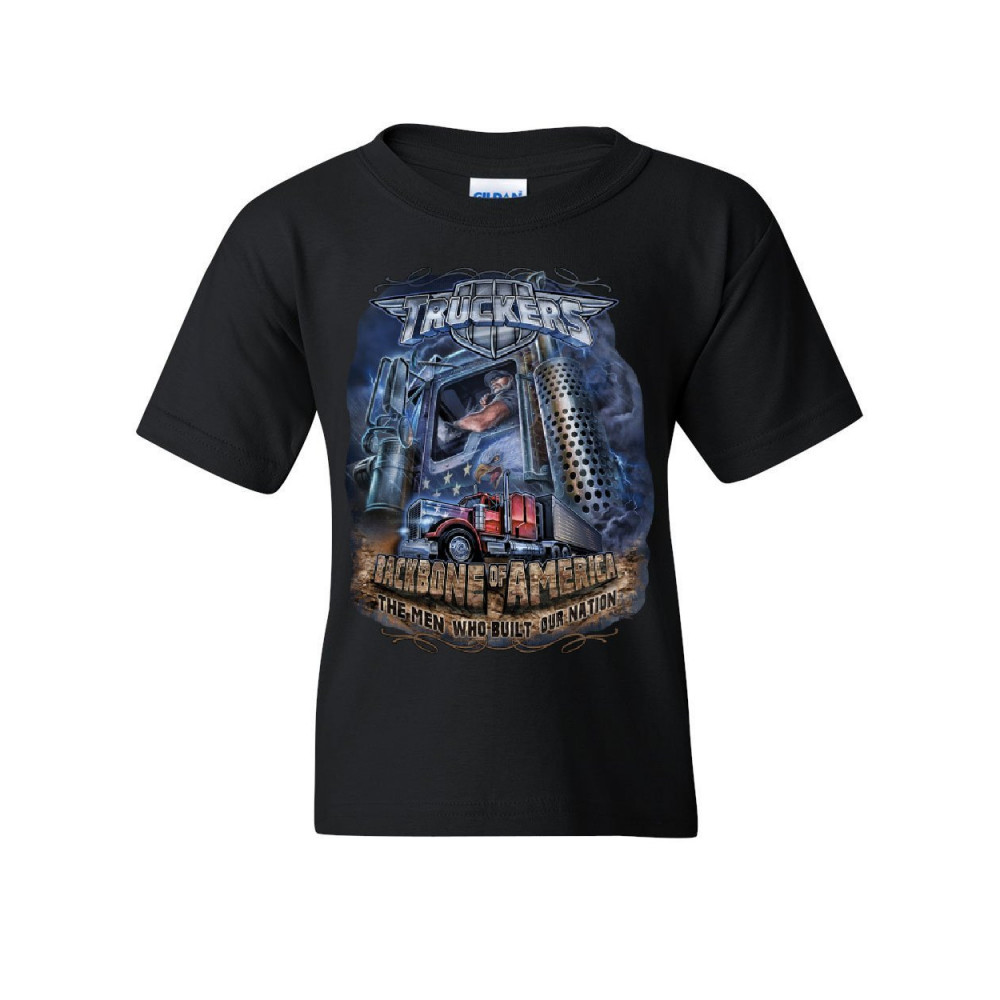 TRUCKERS - BACKBONE OF AMERICA truckers backbone of america youth t-shirt truck driver hauler diesel kids tee black