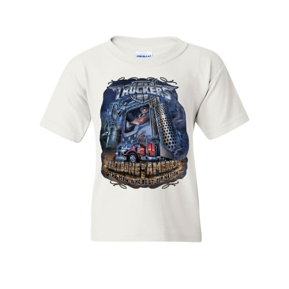 TRUCKERS - BACKBONE OF AMERICA truckers backbone of america youth t-shirt truck driver hauler diesel kids tee white