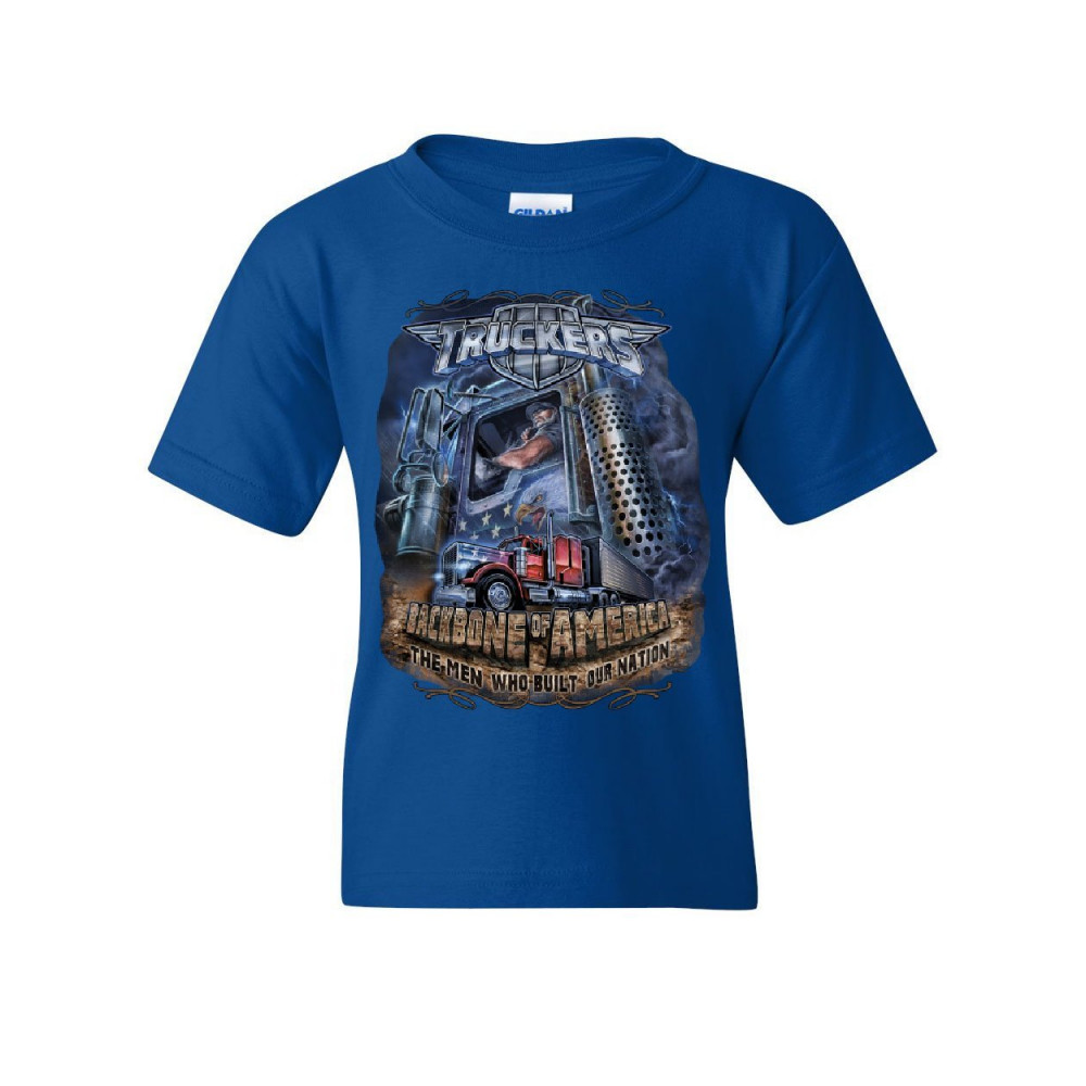 TRUCKERS - BACKBONE OF AMERICA truckers backbone of america youth t-shirt truck driver hauler diesel kids tee royal blue