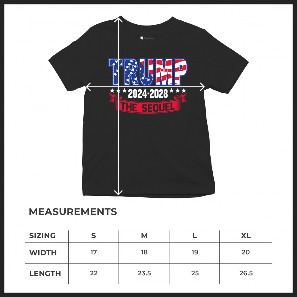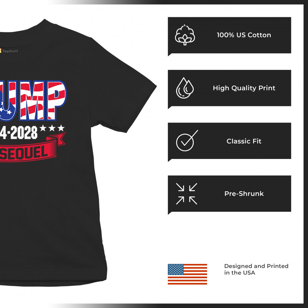 Stand with Trump for 2024-2028 in "The Sequel" design, celebrating America First, conservative values, and 4 more years of patriotic vision.