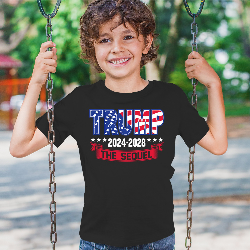 TRUMP 2024-2028 THE SEQUEL youth t-shirt 47th president elect vance maga kids black