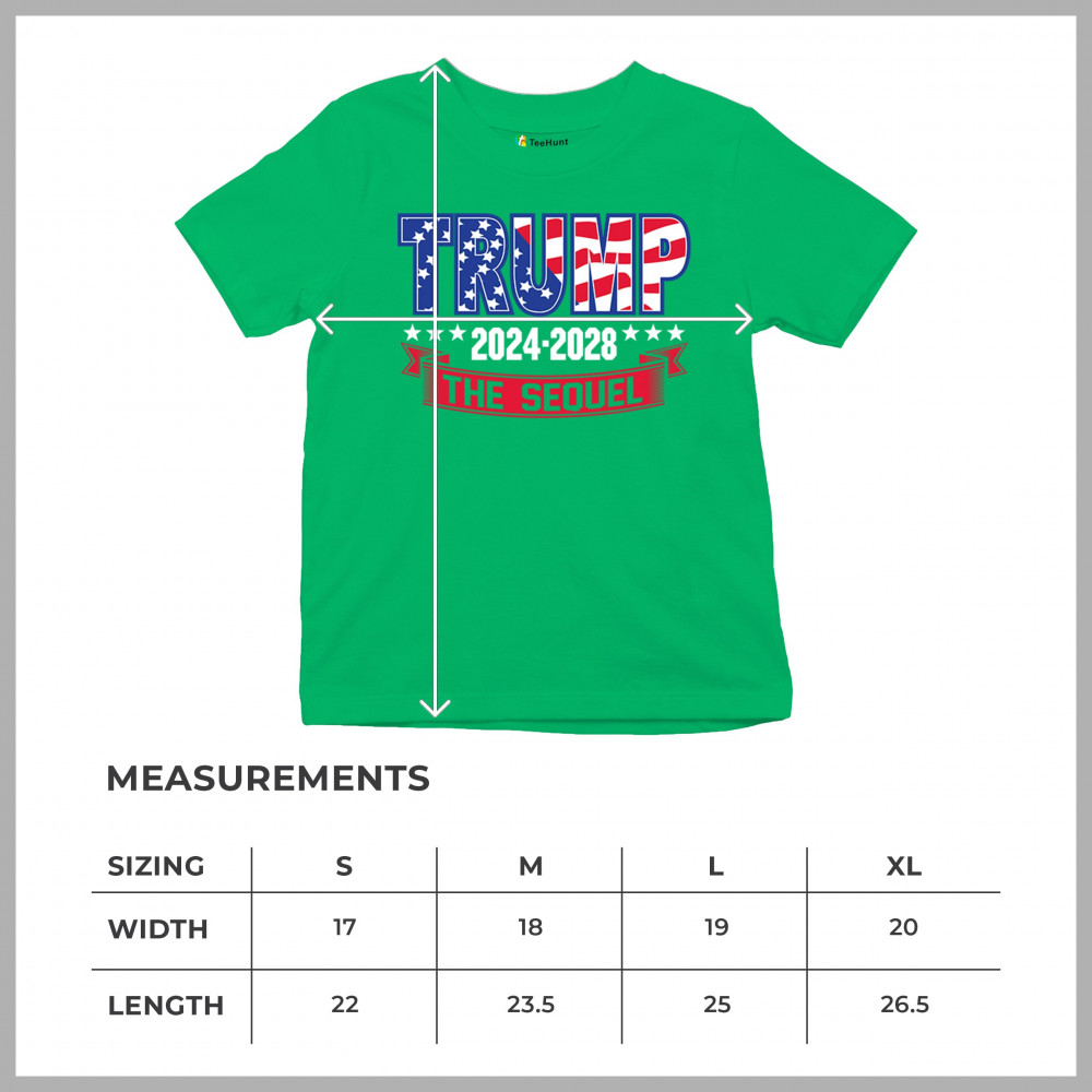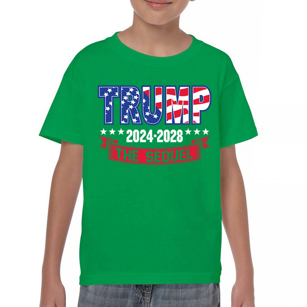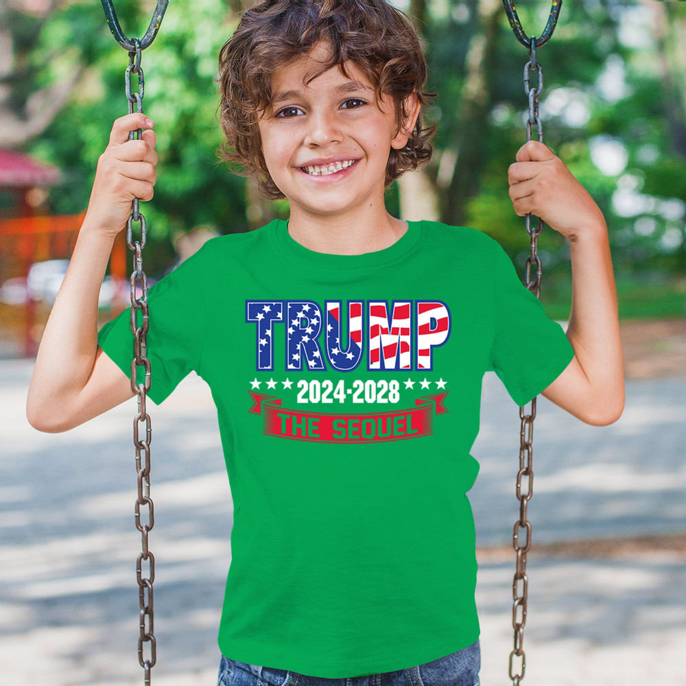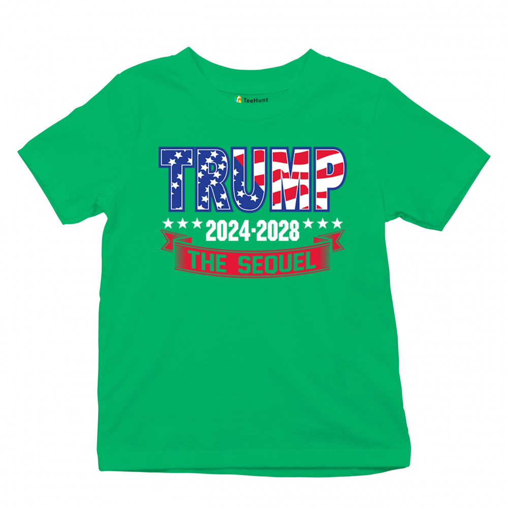 Stand with Trump for 2024-2028 in "The Sequel" design, celebrating America First, conservative values, and 4 more years of patriotic vision.