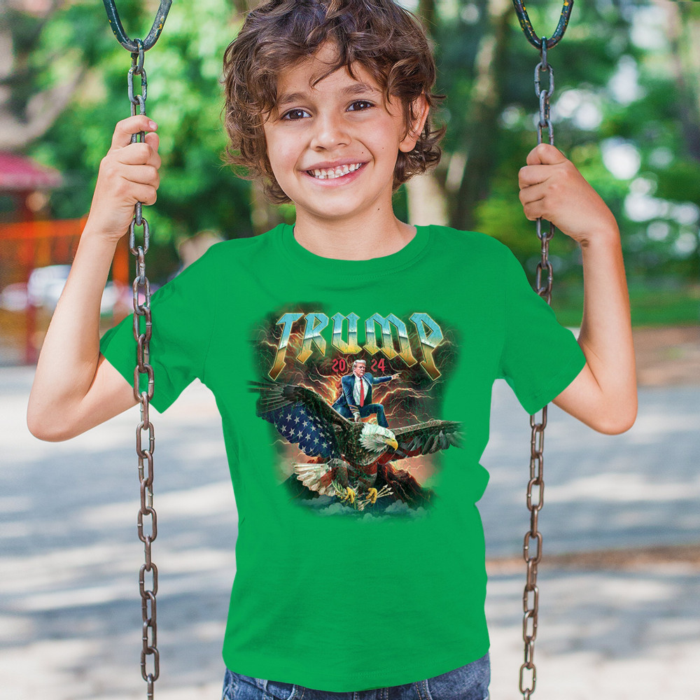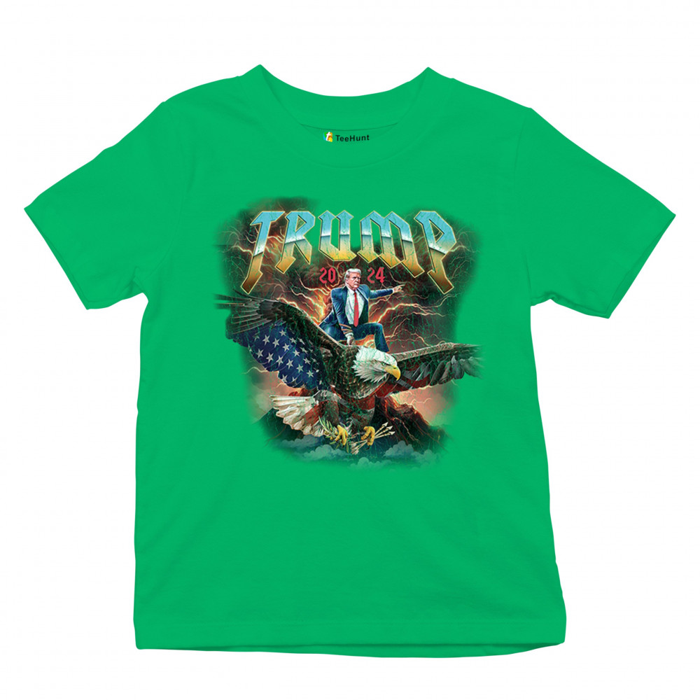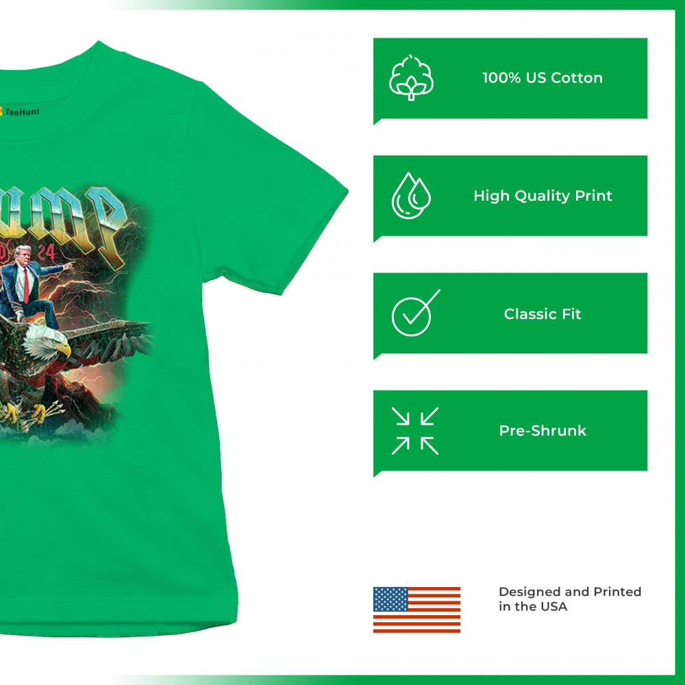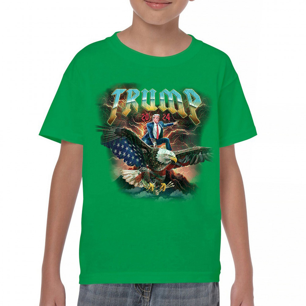 Stand out with our "Trump 2024" design featuring Trump riding an eagle. Perfect for rallies and patriotic events. Show your support with pride and confidence.