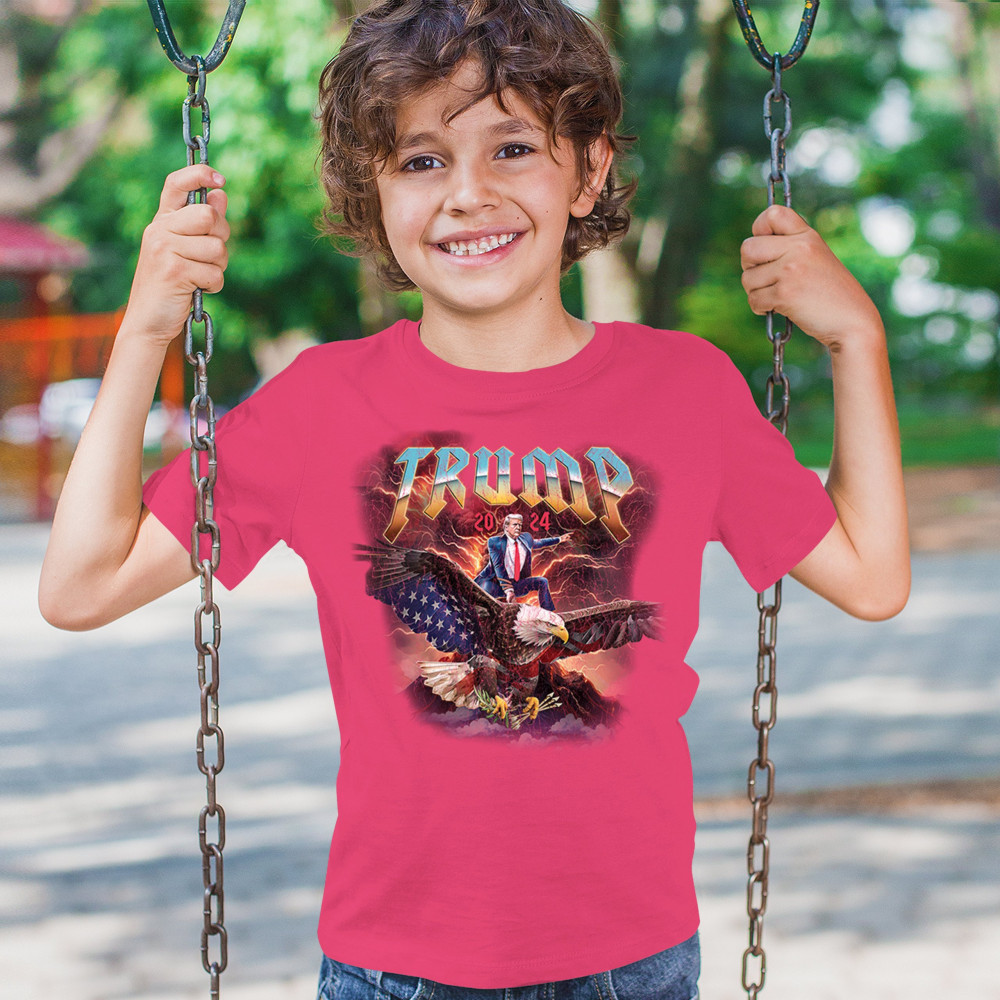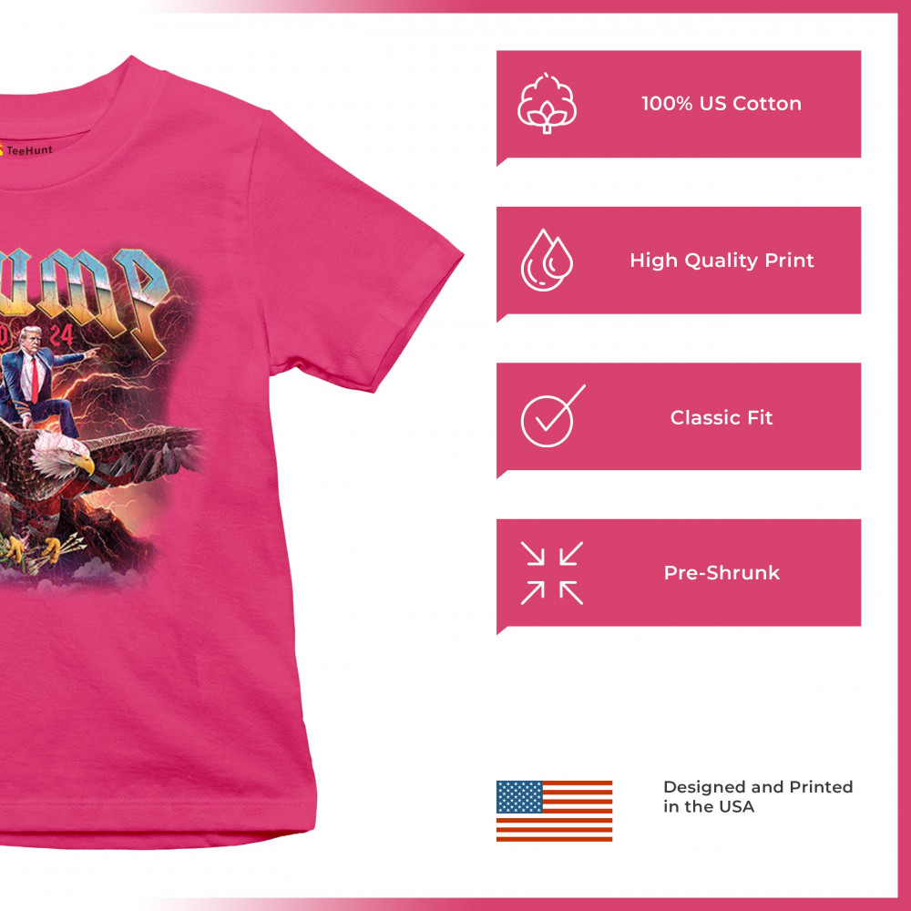 Stand out with our "Trump 2024" design featuring Trump riding an eagle. Perfect for rallies and patriotic events. Show your support with pride and confidence.