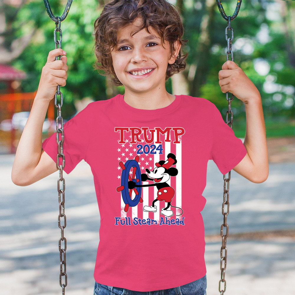 Show your support for Trump with the "Full Steam Ahead" design, symbolizing conservative values and America's resilience. Perfect for rallies and daily wear.
