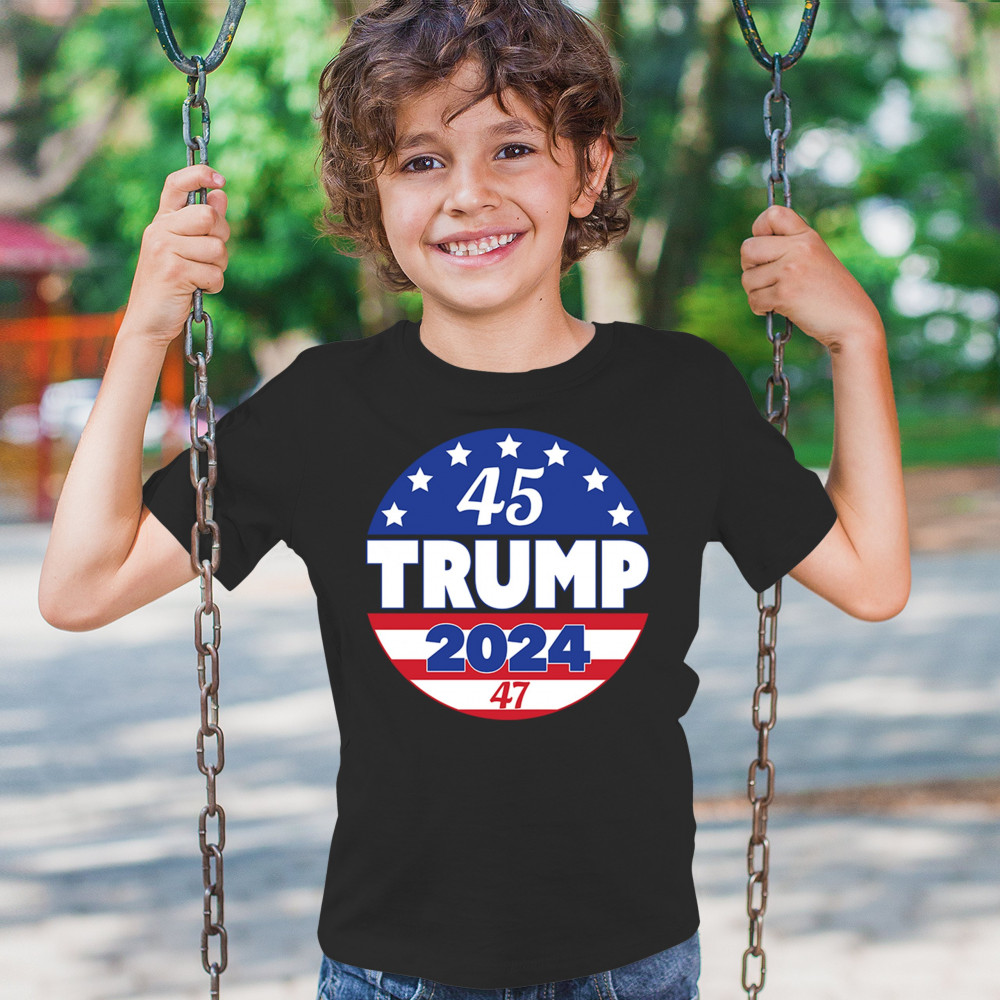 Embrace your conservative pride with this bold "45 TRUMP 2024" design. Representing America First, Republican victory, and the people’s mandate, it’s the perfect way to showcase your support for Donald J. Trump’s historic journey to the 47th presidency. Whether at rallies, political events, or casual outings, this emblem unites Trump supporters in a fight for freedom and patriotism.