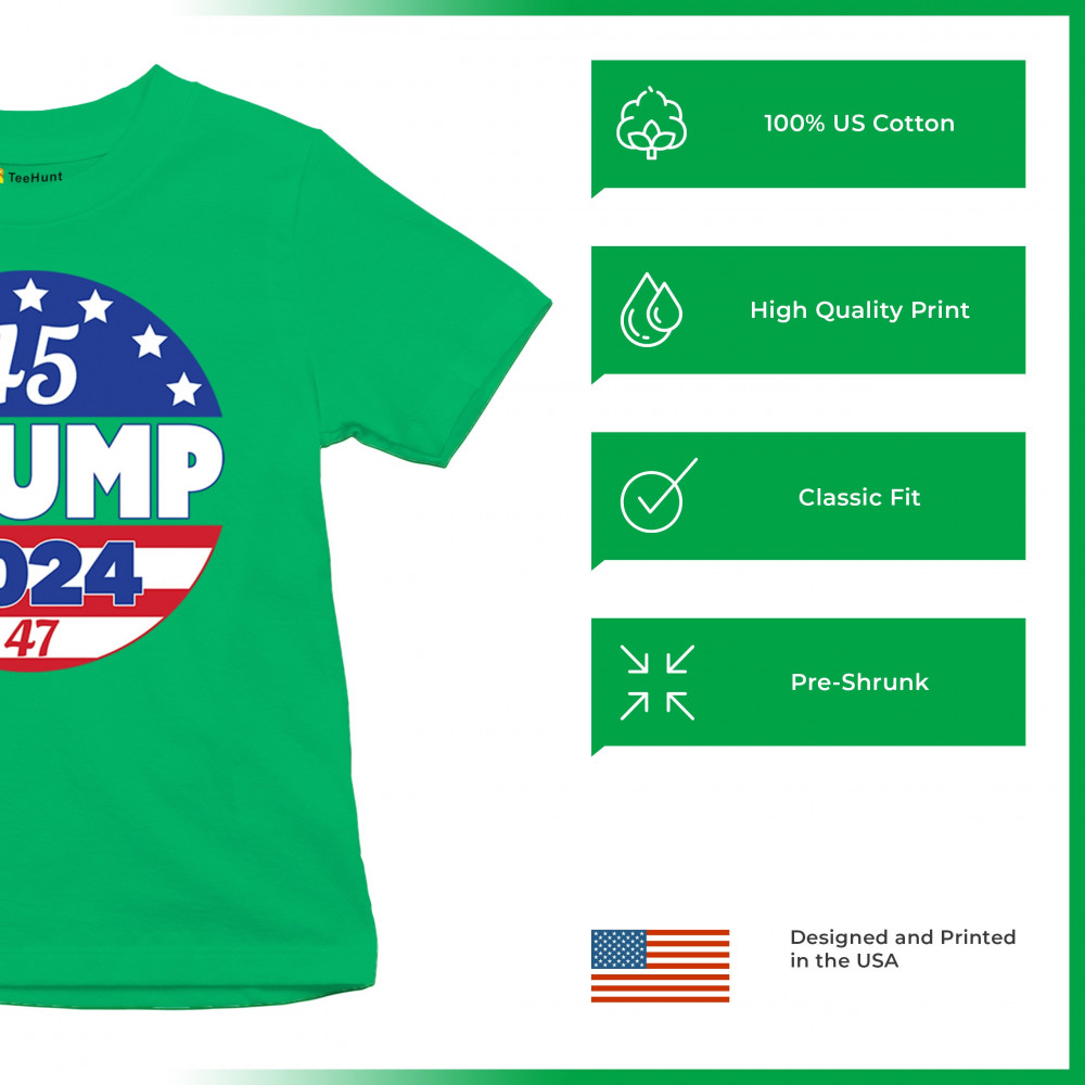 Embrace your conservative pride with this bold "45 TRUMP 2024" design. Representing America First, Republican victory, and the people’s mandate, it’s the perfect way to showcase your support for Donald J. Trump’s historic journey to the 47th presidency. Whether at rallies, political events, or casual outings, this emblem unites Trump supporters in a fight for freedom and patriotism.