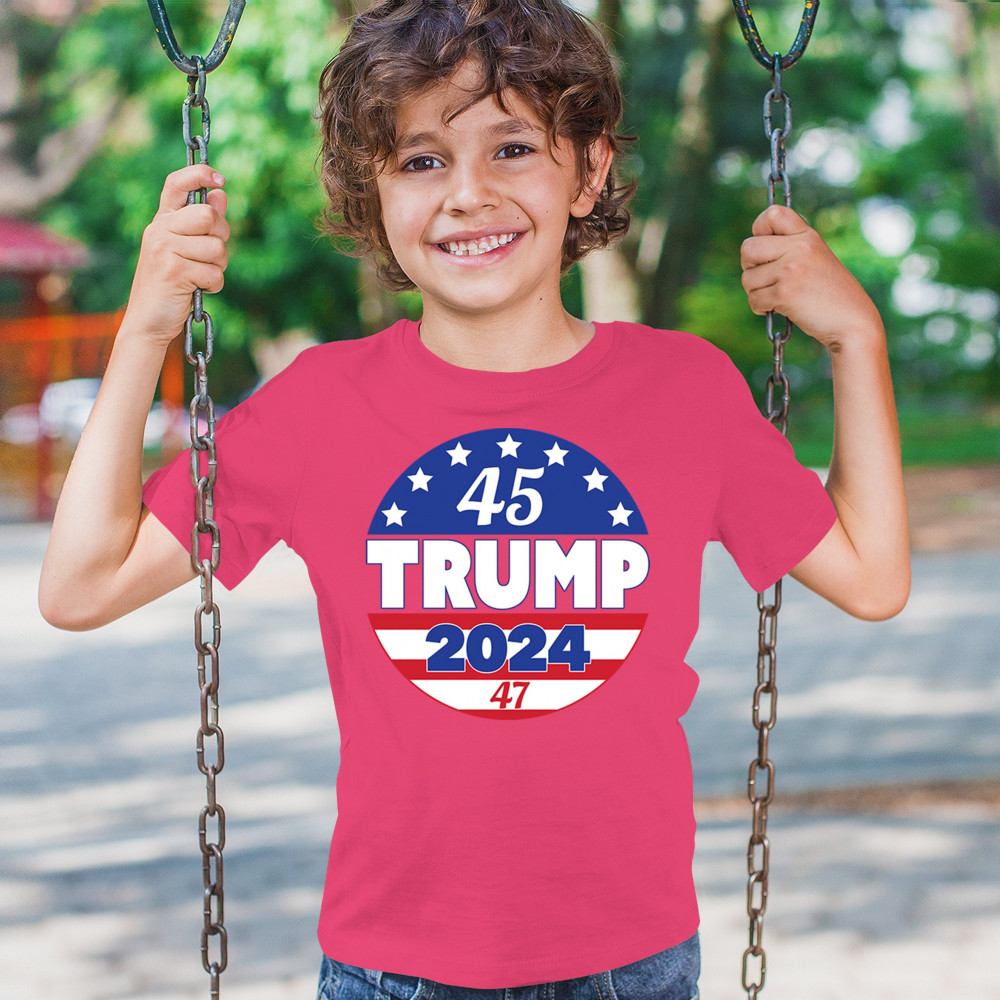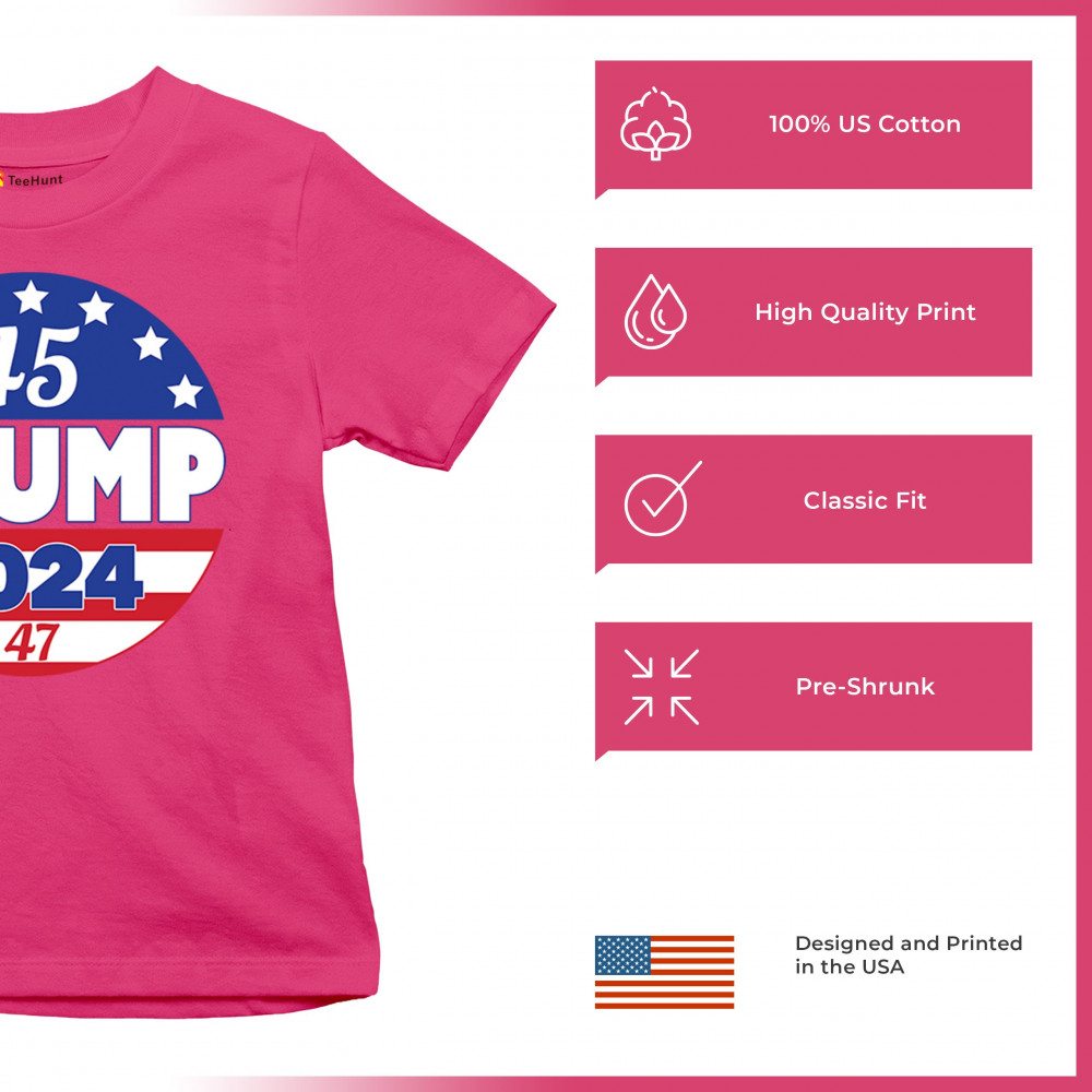 Embrace your conservative pride with this bold "45 TRUMP 2024" design. Representing America First, Republican victory, and the people’s mandate, it’s the perfect way to showcase your support for Donald J. Trump’s historic journey to the 47th presidency. Whether at rallies, political events, or casual outings, this emblem unites Trump supporters in a fight for freedom and patriotism.