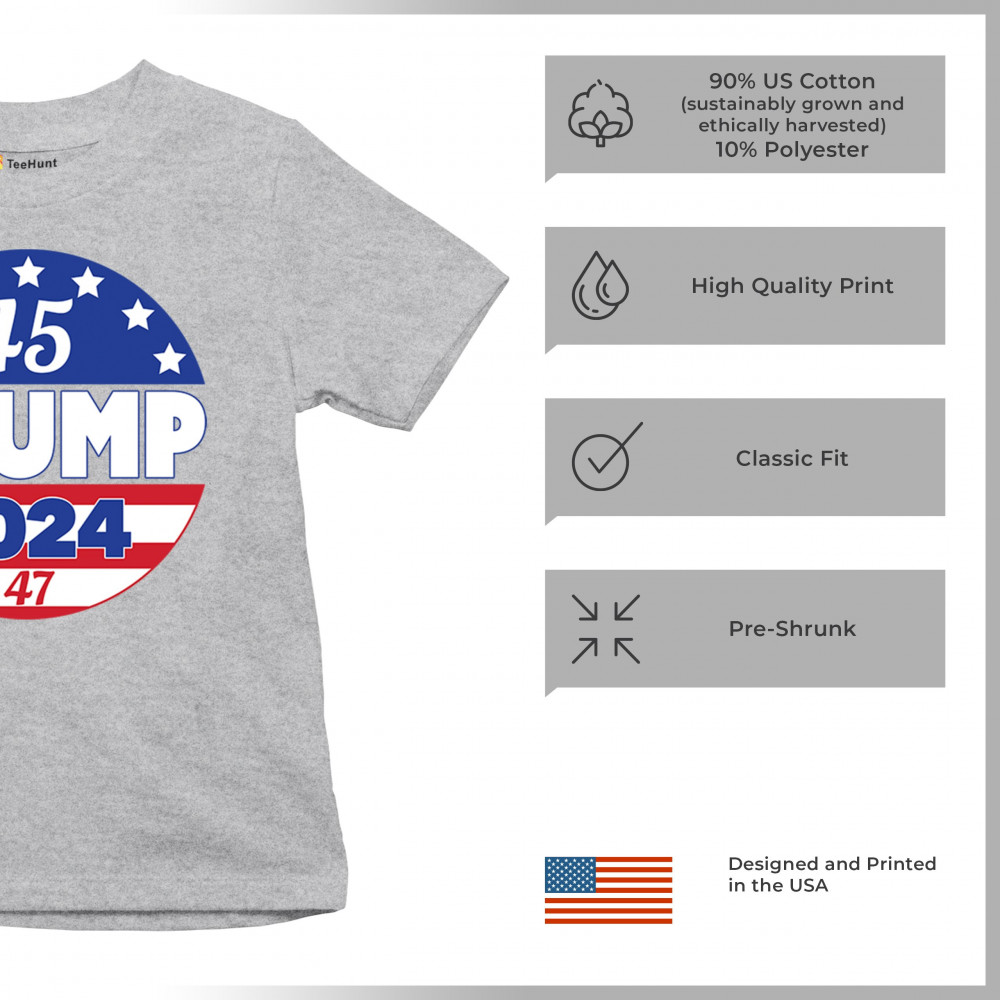Embrace your conservative pride with this bold "45 TRUMP 2024" design. Representing America First, Republican victory, and the people’s mandate, it’s the perfect way to showcase your support for Donald J. Trump’s historic journey to the 47th presidency. Whether at rallies, political events, or casual outings, this emblem unites Trump supporters in a fight for freedom and patriotism.