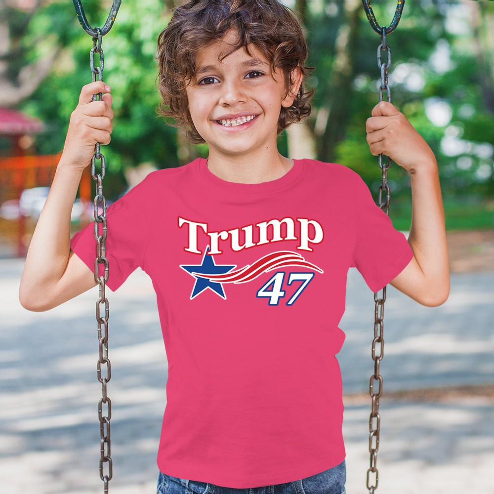 "Trump 47" design for patriotic Trump supporters, celebrating conservative values, Red Wave, and America First with pride and unity for the future.