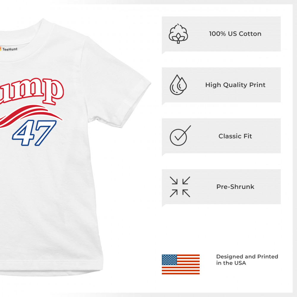 "Trump 47" design for patriotic Trump supporters, celebrating conservative values, Red Wave, and America First with pride and unity for the future.