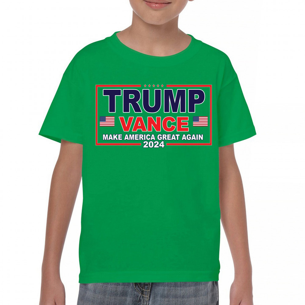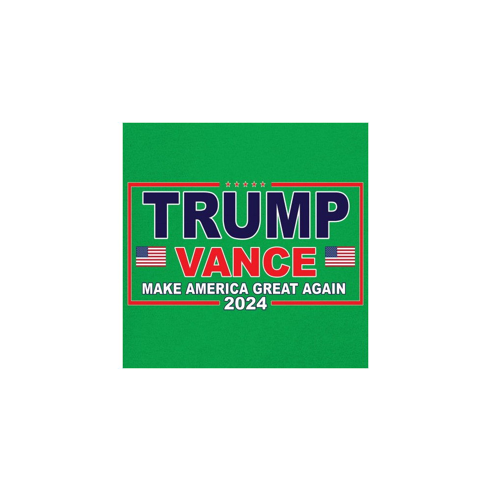 Showcase your support for the Trump-Vance 2024 campaign with this bold patriotic design featuring the American flag and "Make America Great Again" slogan.