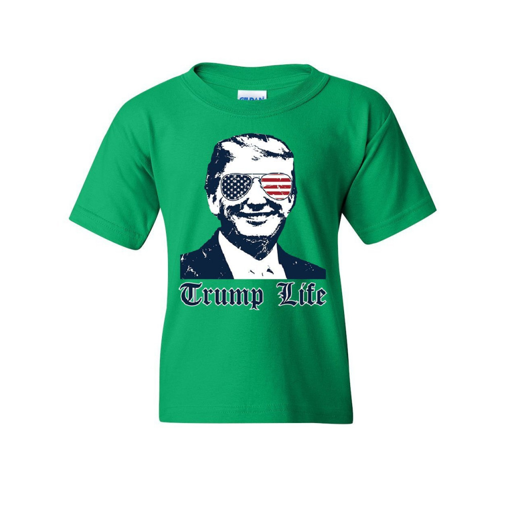 TRUMP LIFE youth t-shirt 45th maga keep america great thug life parody kids tee green