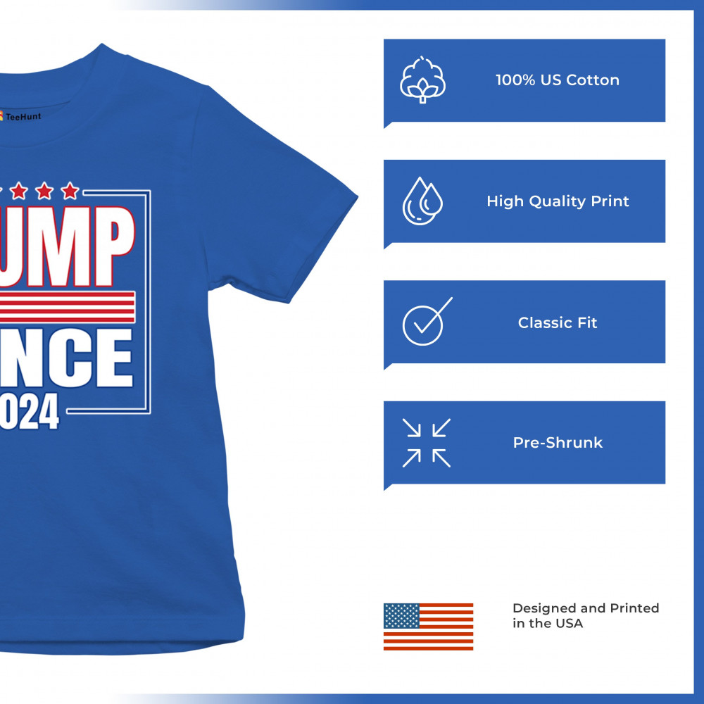 Show your support for Trump-Vance 2024 with this bold design. Perfect for rallies and everyday wear, it represents resilience and strong leadership.