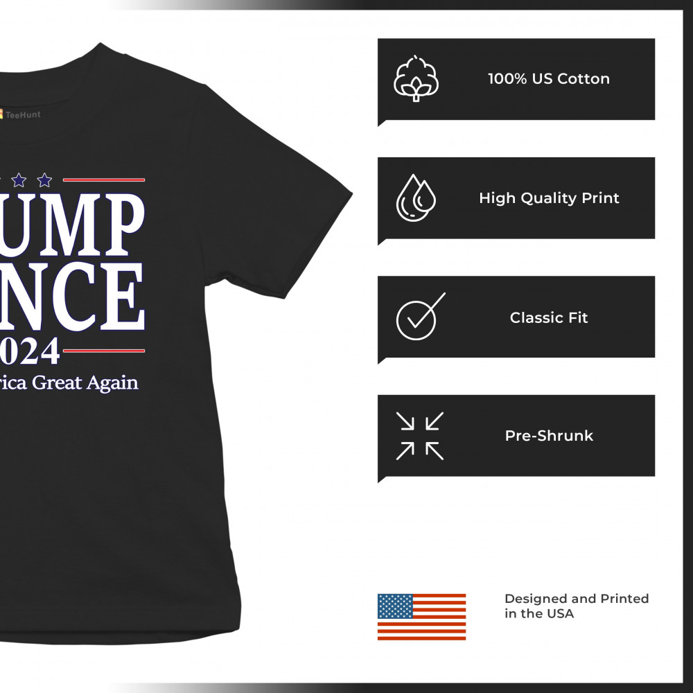Show your support with the "Trump Vance 2024" design, perfect for rallies and patriotic events. Express your conservative values with pride.