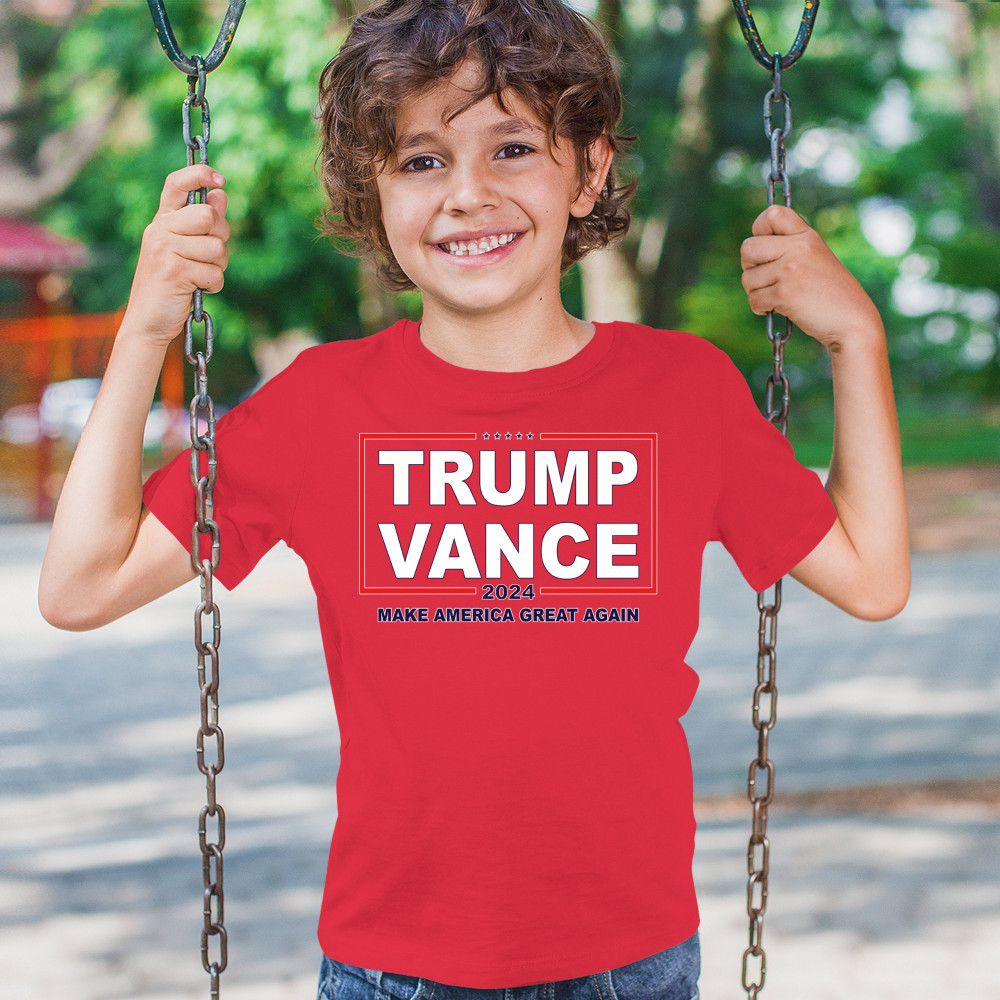 Showcase your support for the Trump-Vance 2024 campaign with this eye-catching design. Emblazoned with the "Make America Great Again" slogan, this artwork is perfect for conservative rallies, political gatherings, or simply expressing your political views. The striking red, white, and blue colors highlight your American pride and dedication to the conservative movement. Comfortable and stylish, this design is a great addition to any wardrobe, allowing you to stand out and make a statement wherever you go.