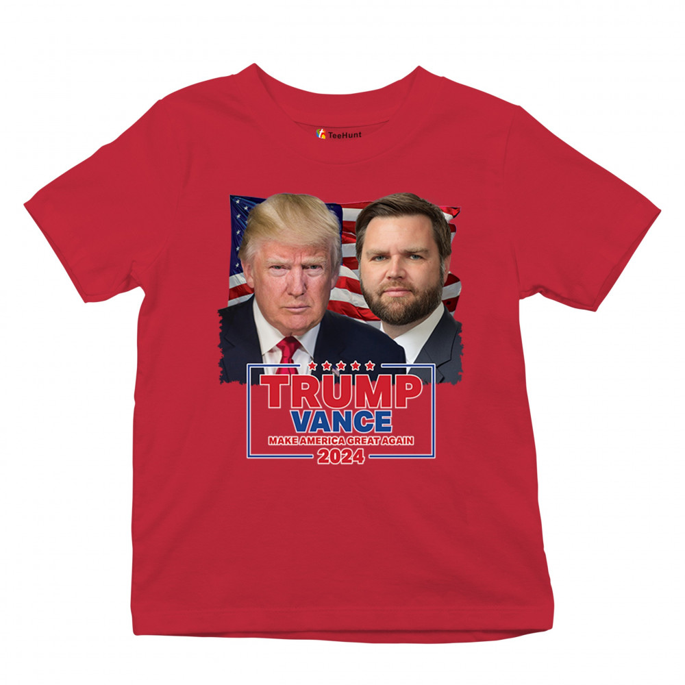 Show your support for Trump-Vance 2024 with this bold design featuring Trump and Vance against the American flag. Perfect for rallies and political events.
