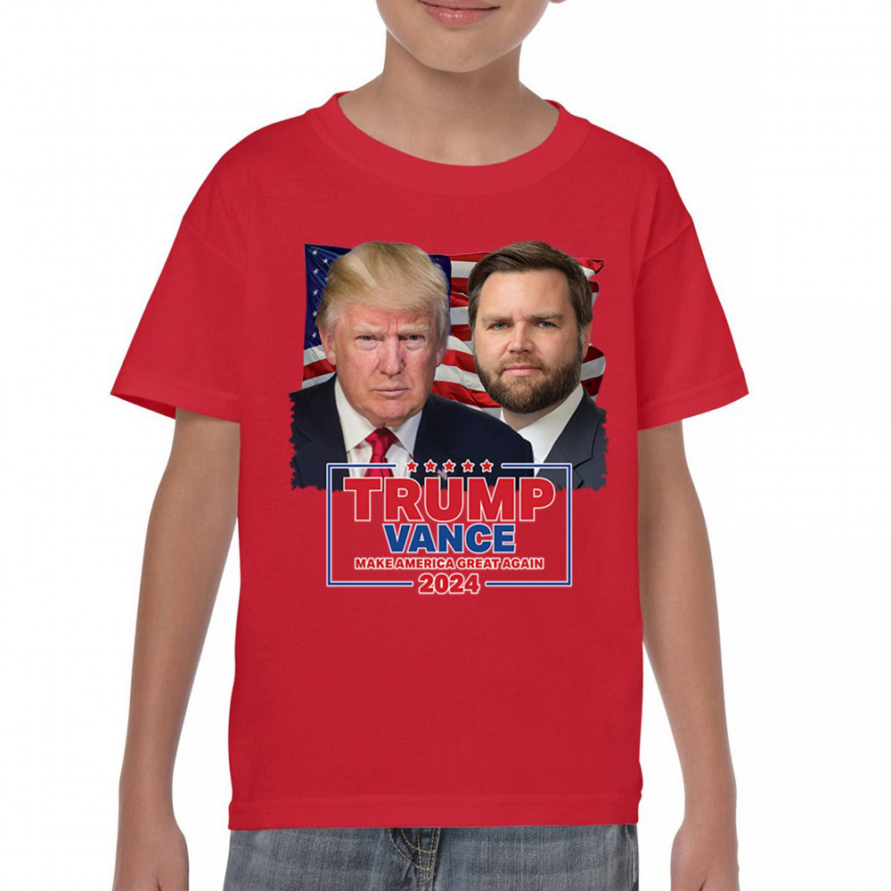 Support the Trump-Vance 2024 campaign with our exclusive design, featuring prominent images of Donald Trump and J.D. Vance set against the American flag. This design is perfect for rallies, political events, and daily wear, showcasing your dedication to the conservative movement. Its bold graphics and patriotic theme make it a standout piece for any supporter. Join the movement and proudly display your support with this dynamic and inspiring design.