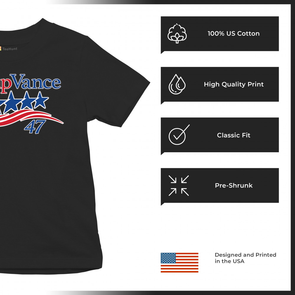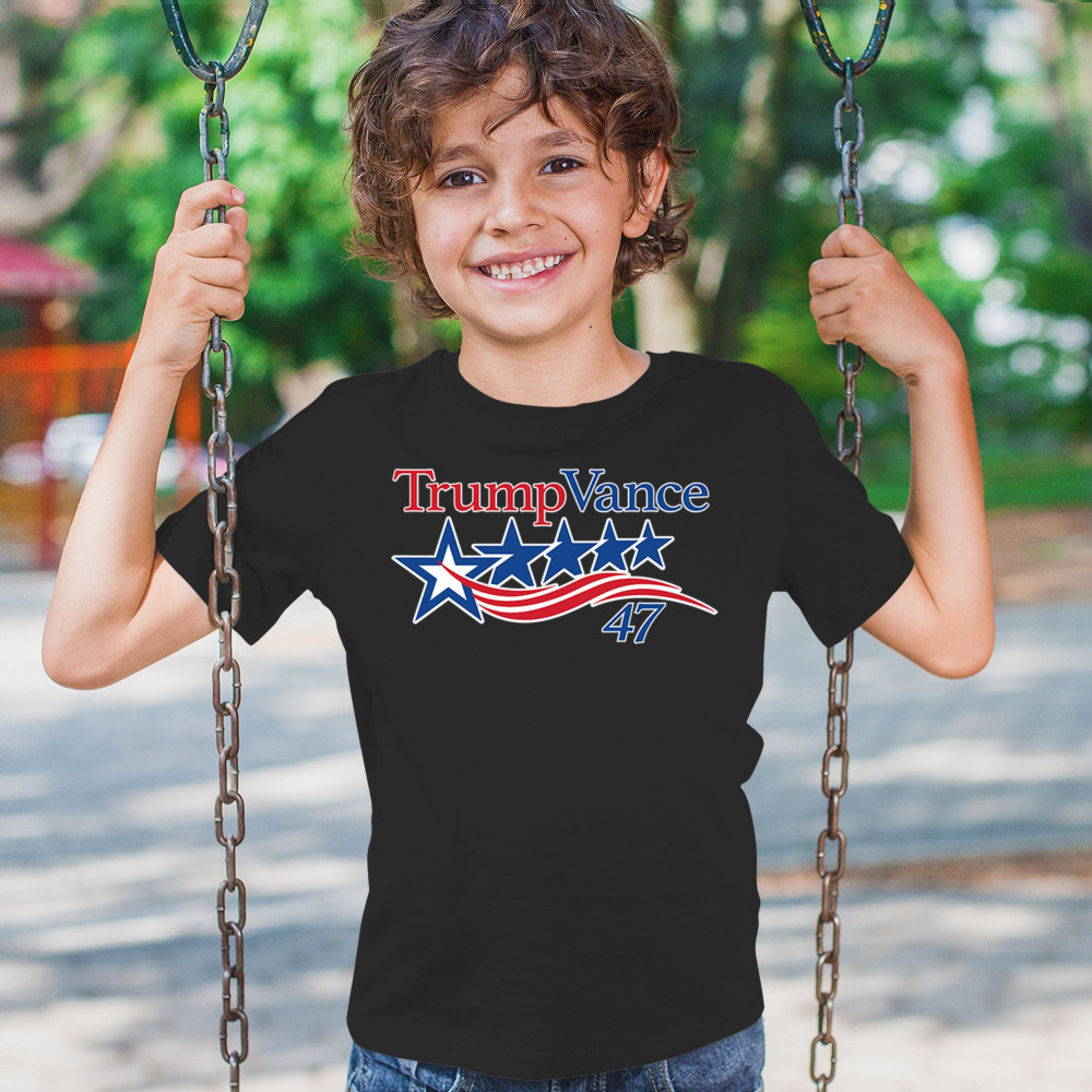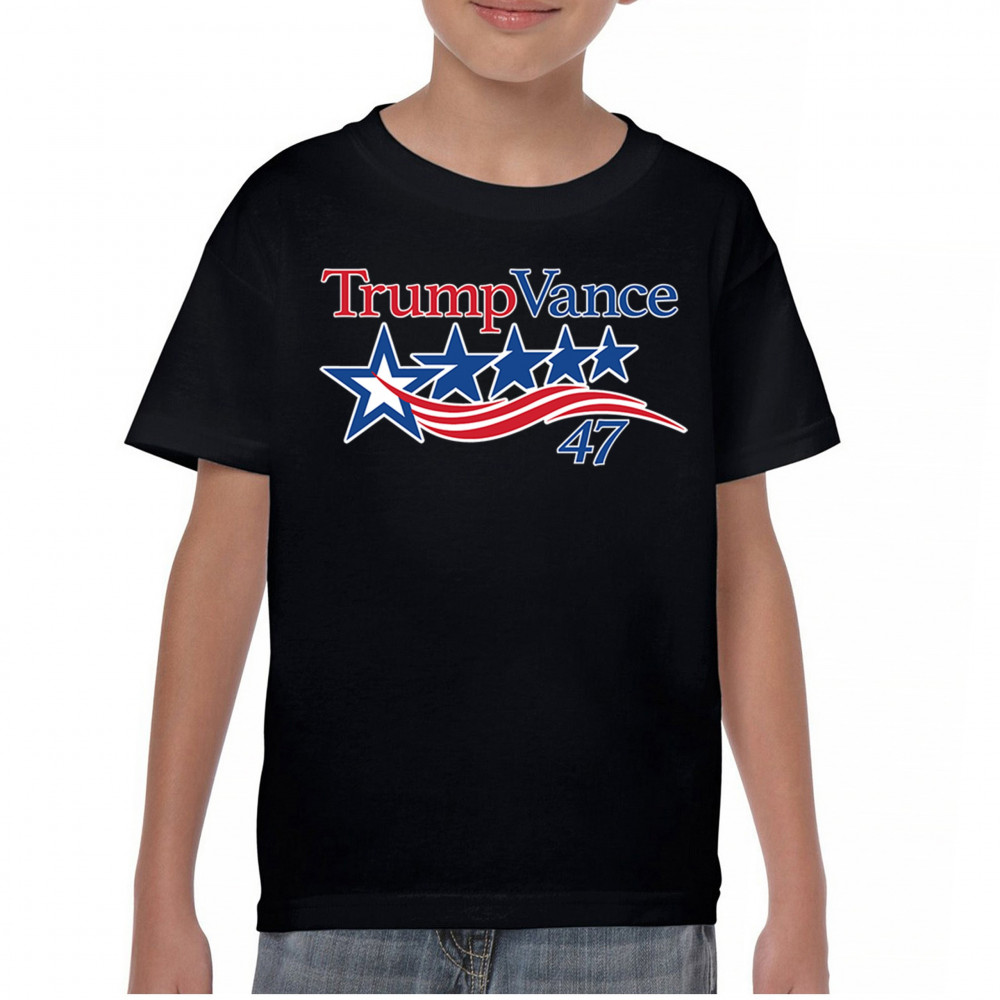 TRUMP VANCE 47 youth t-shirt maga president elect red wave 4 more years kids black