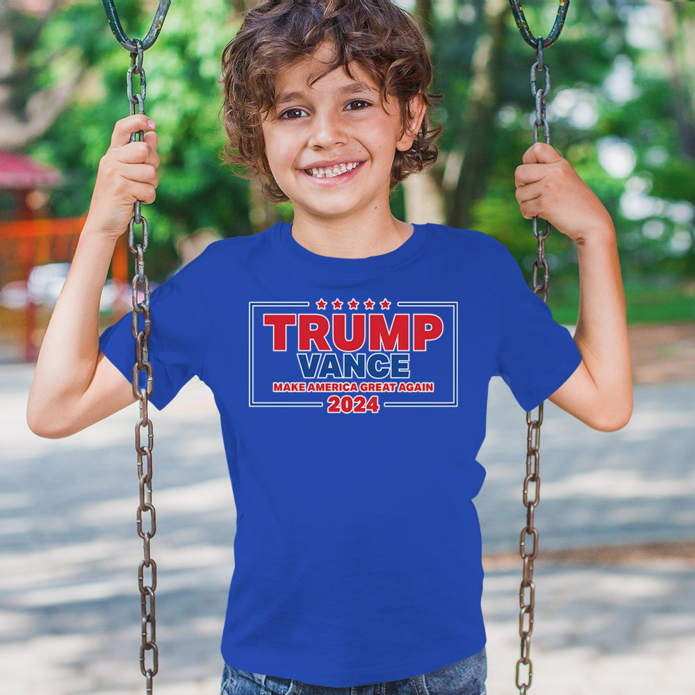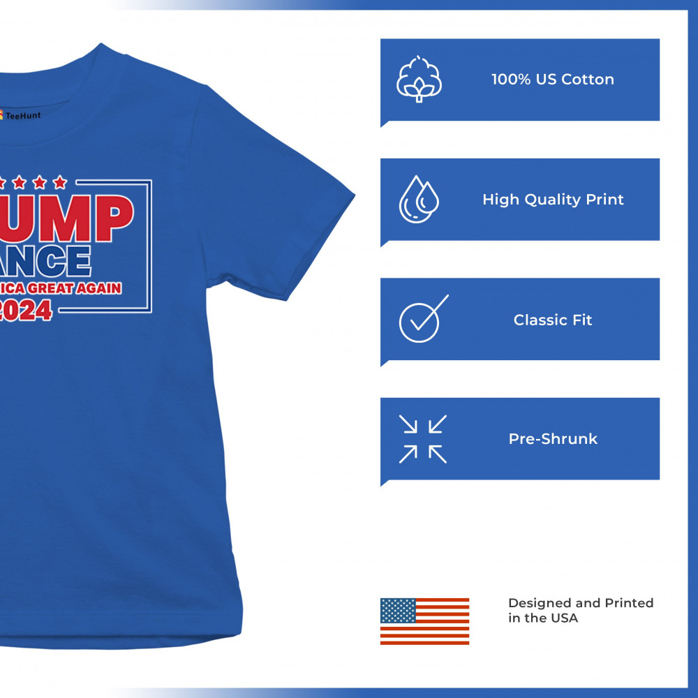 Express your support for the Trump-Vance 2024 campaign with this striking design that embodies American patriotism and conservative values. Featuring the American flag and the bold slogan "Trump Vance 2024," this design is perfect for rallies, political events, or daily wear. It’s a testament to your unwavering support for conservative ideals and the vision of making America great again. Join the movement and show your allegiance with this powerful and iconic design.