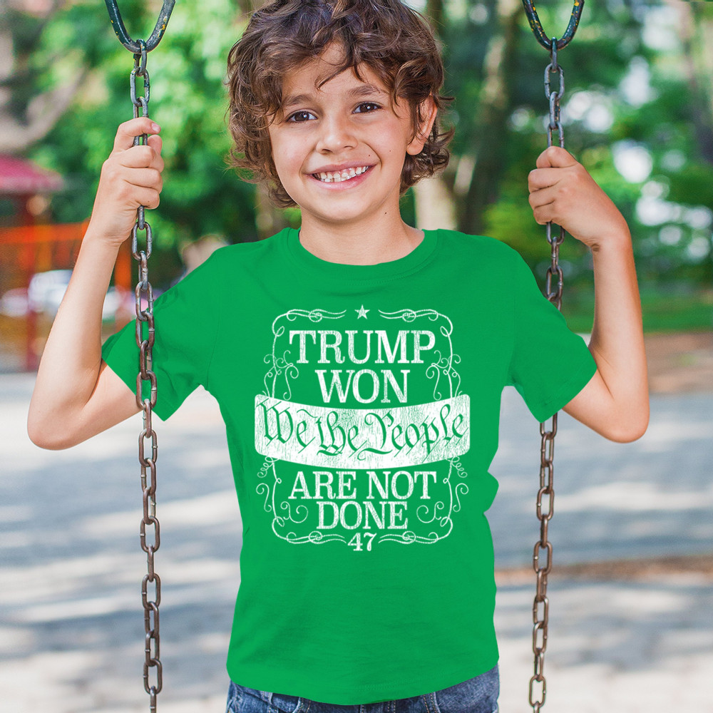 Celebrate the power of "We the People" with this "Trump Won" design, a rallying cry for those who support Donald J. Trump and the Republican movement. Featuring bold typography and a message of resilience, it embodies the conservative fight for victory and unity. Perfect for events, gifts, or everyday wear, it’s a powerful statement of faith in the party of common sense and the people's mandate.