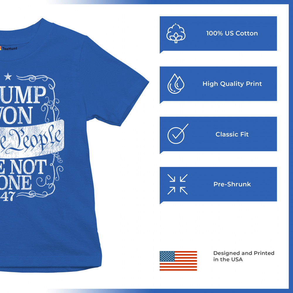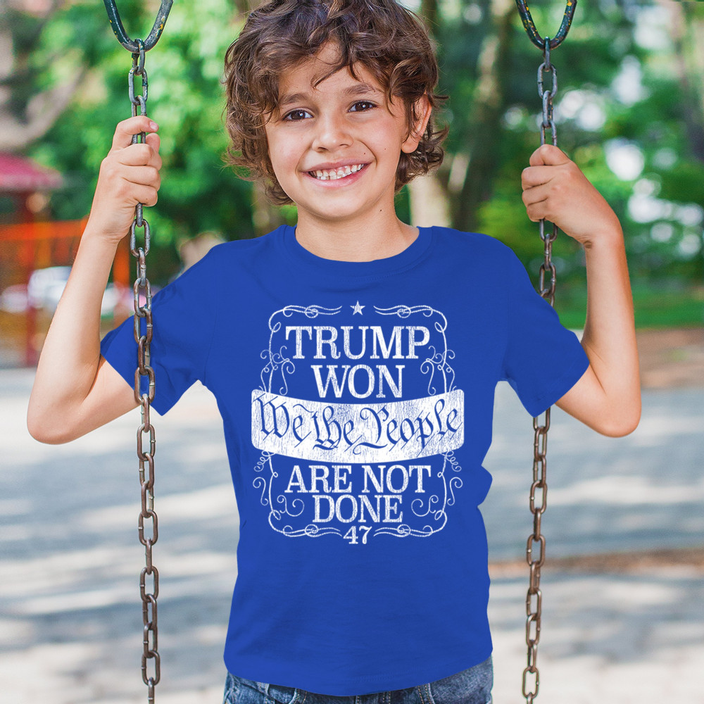 Celebrate the power of "We the People" with this "Trump Won" design, a rallying cry for those who support Donald J. Trump and the Republican movement. Featuring bold typography and a message of resilience, it embodies the conservative fight for victory and unity. Perfect for events, gifts, or everyday wear, it’s a powerful statement of faith in the party of common sense and the people's mandate.