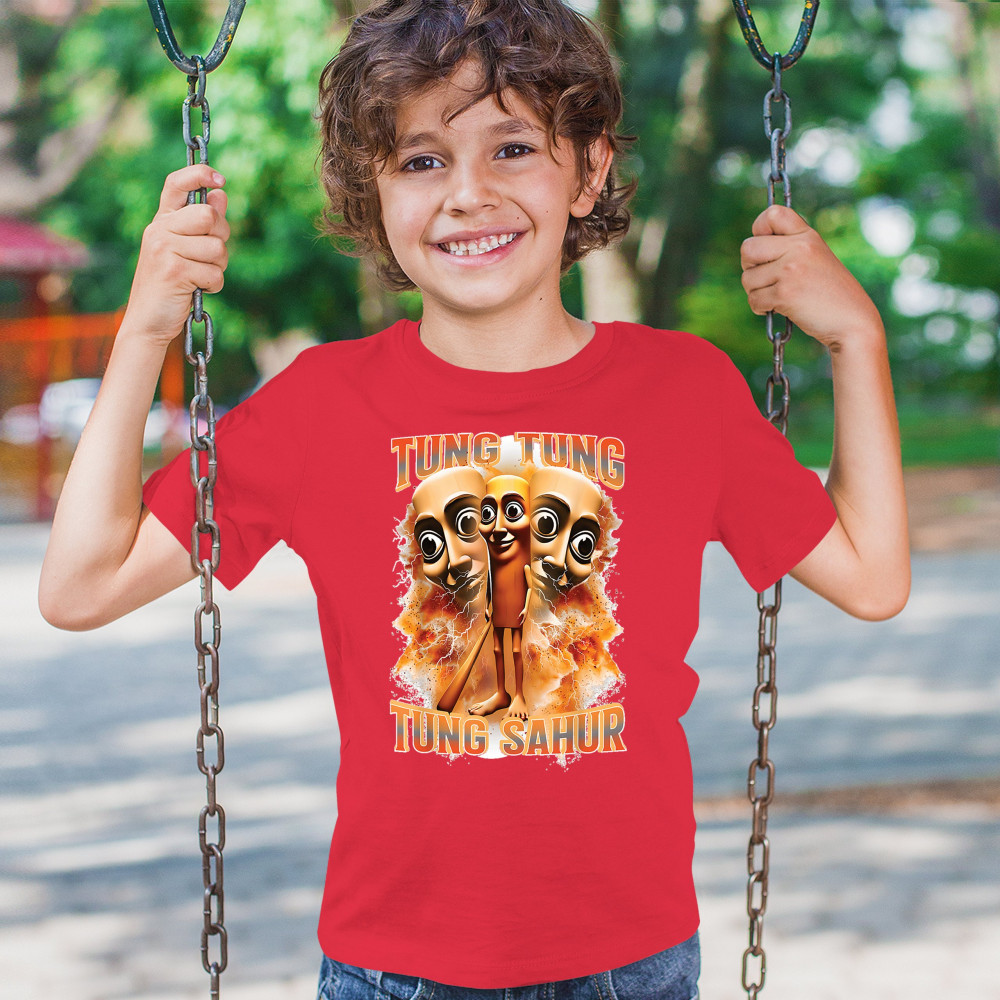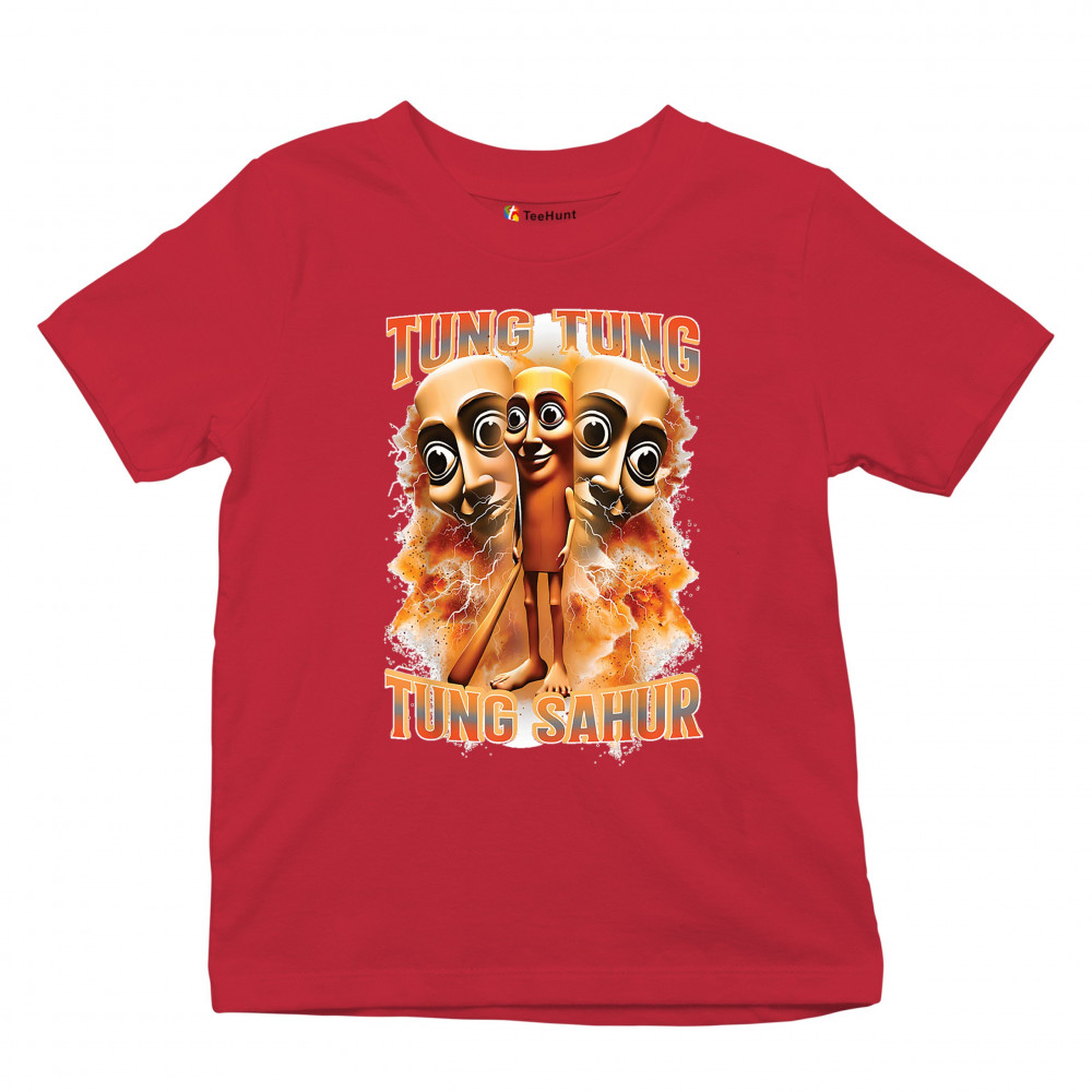 Tung Tung Tung Sahur design blends cursed-core, meme humor, Gen Z fashion, ironic style, and viral brainrot absurdity into one wild tee.